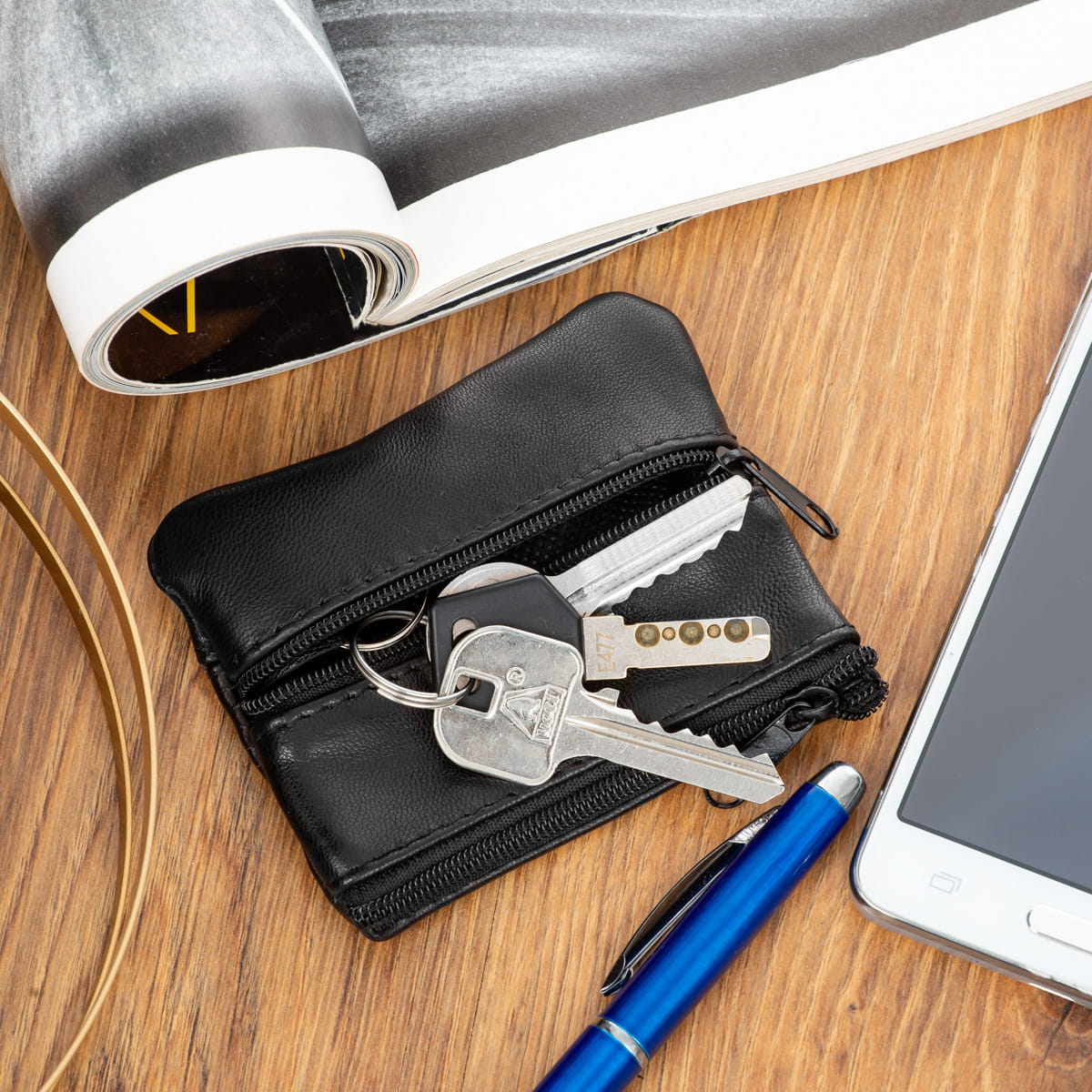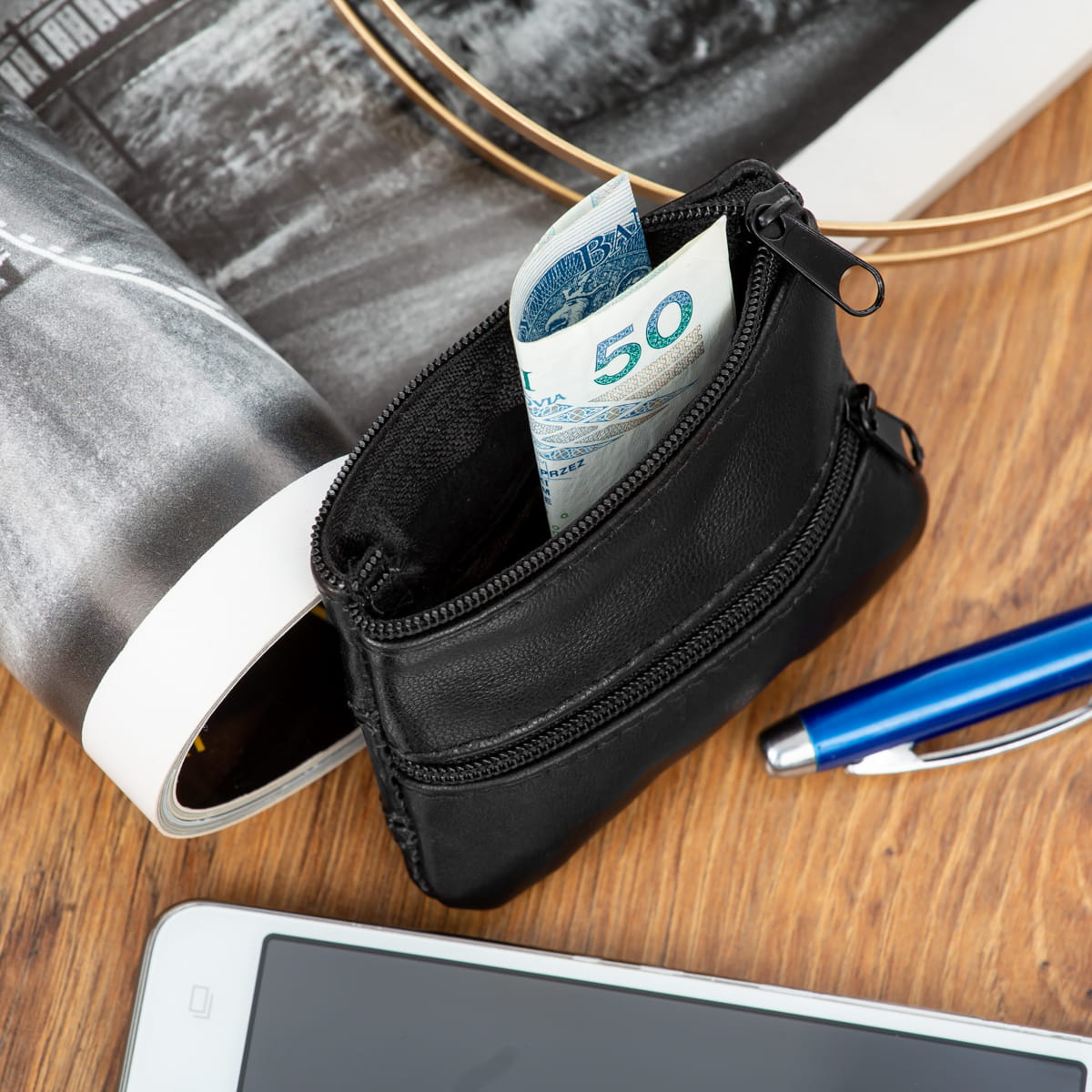 Etui Skórzane Riko na klucze monety Czarne