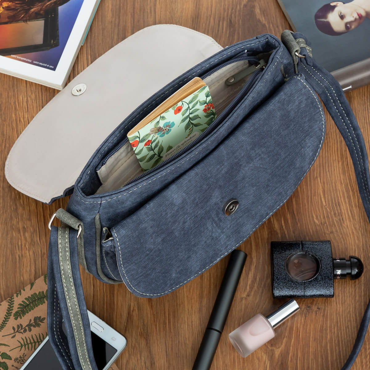 - zamykana na magnetyczny zatrzask kieszeń pod klapą