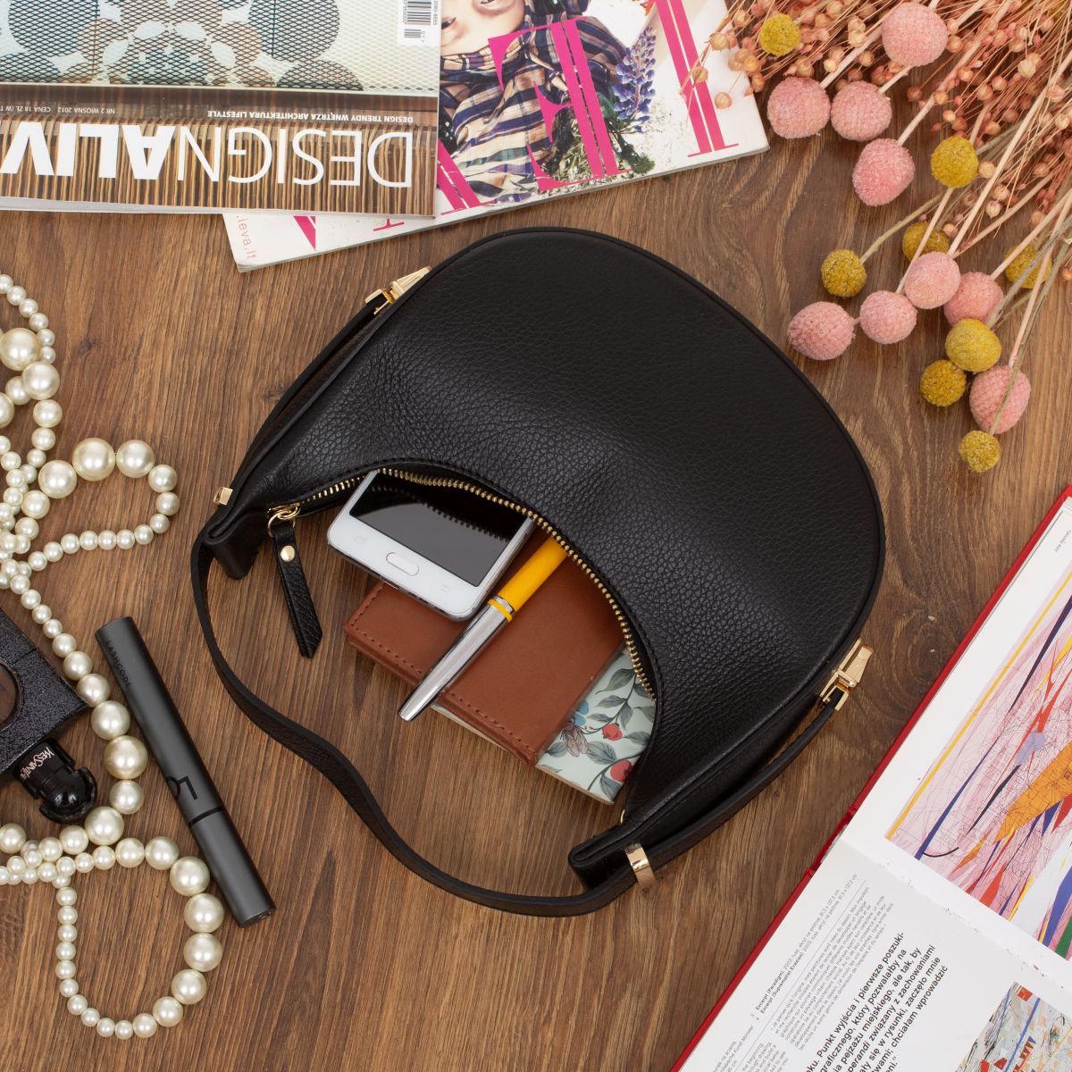 Mała Torebka Damska Skórzana Kaletnik Mezzaluna Czarna