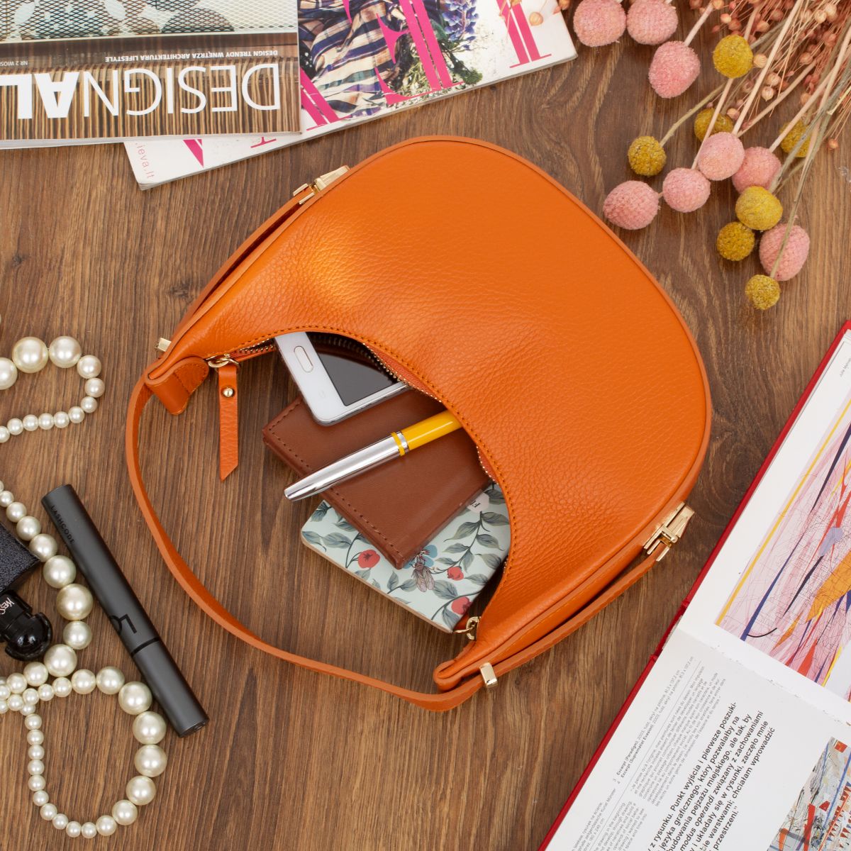 Mała Torebka Damska Skórzana Kaletnik Mezzaluna Pomarańczowa