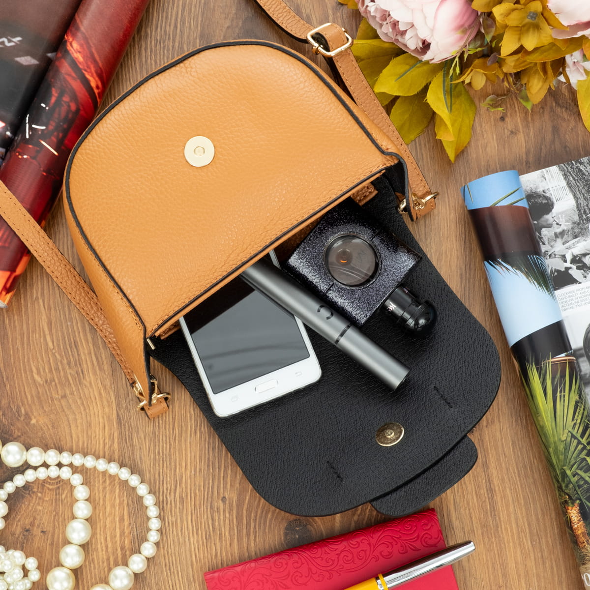 Mała torebka wykonana z wysokogatunkowej, włoskiej skóry licowej. Skóra została wykończona w taki sposób aby zachować jej naturalną fakturę. Jest przystosowana do noszenia na ramieniu.