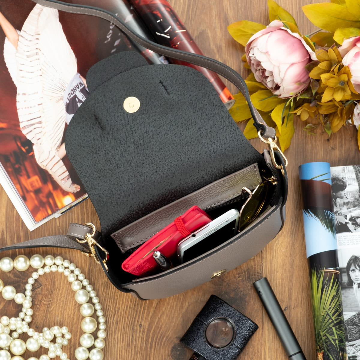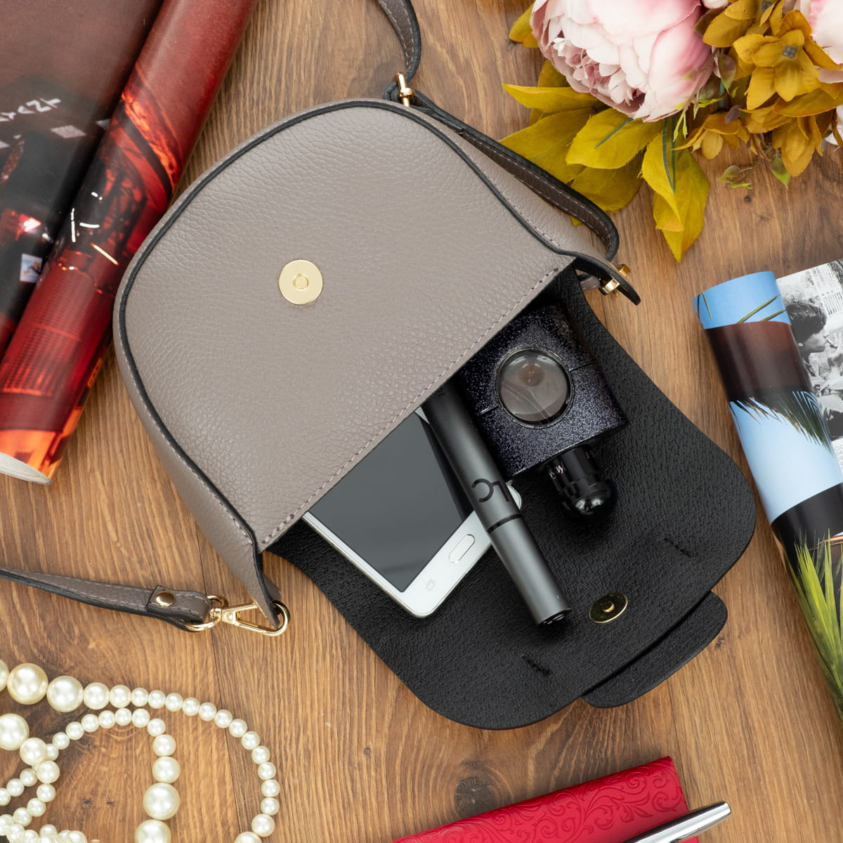 Mała torebka wykonana z wysokogatunkowej, włoskiej skóry licowej. Skóra została wykończona w taki sposób aby zachować jej naturalną fakturę. Jest przystosowana do noszenia na ramieniu.