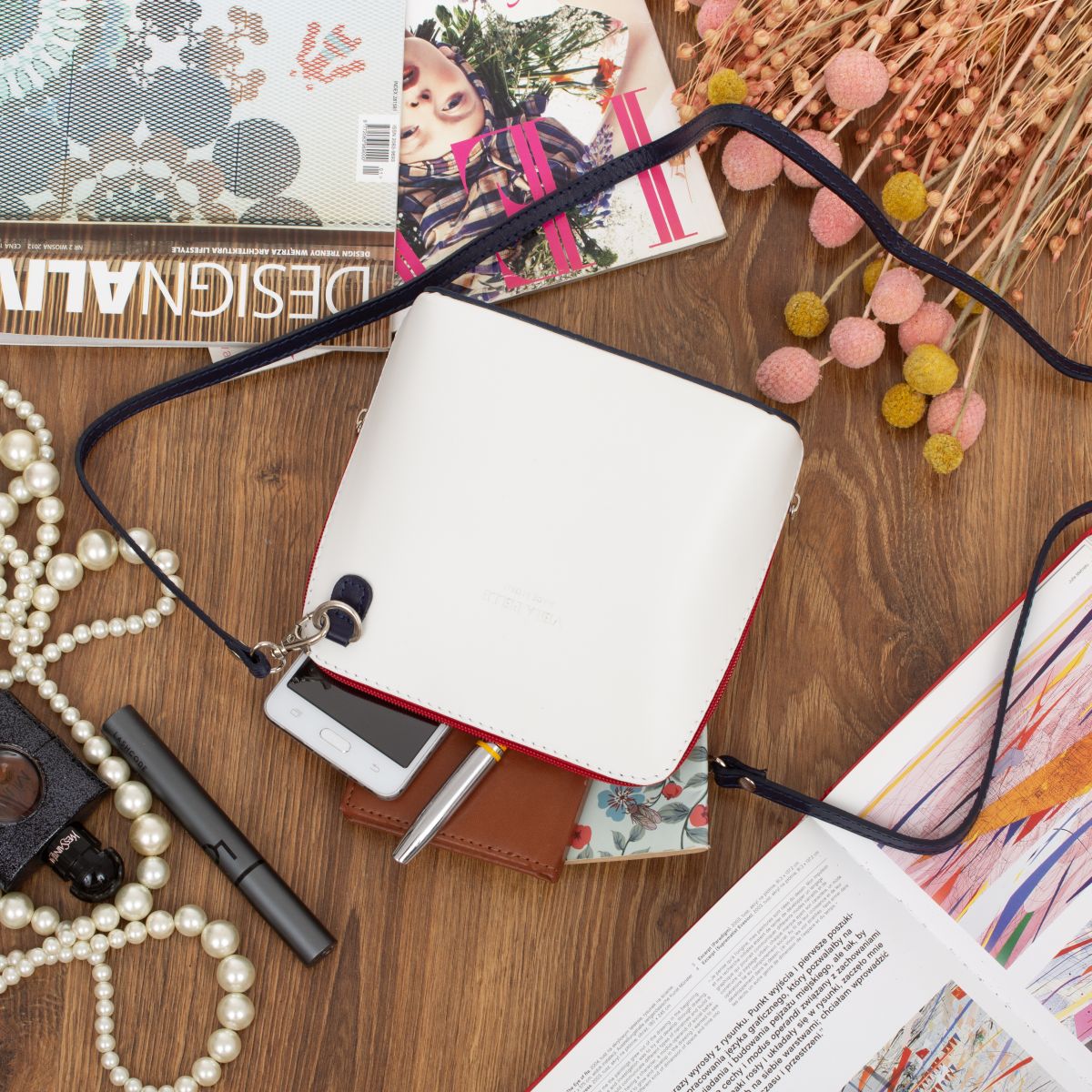 Mała Torebka Skórzana Kaletnik Conica Biało Granatowa