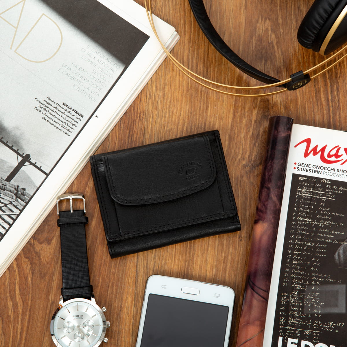 Mały Portfel Męski RFiD Skórzany Natural Brand Czarny