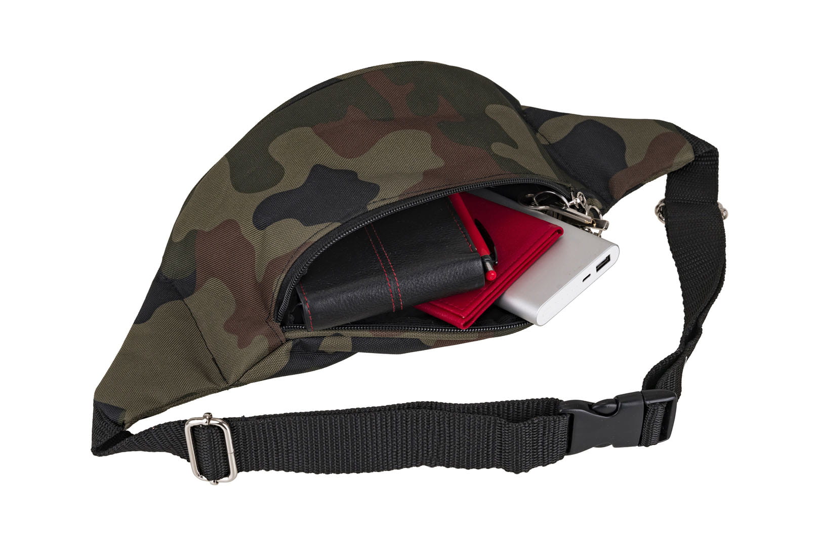 Wykonana z nieprzemakalnej, kodury moro. Powiększona komora pomieści więcej rzeczy niż standardowa nerka.