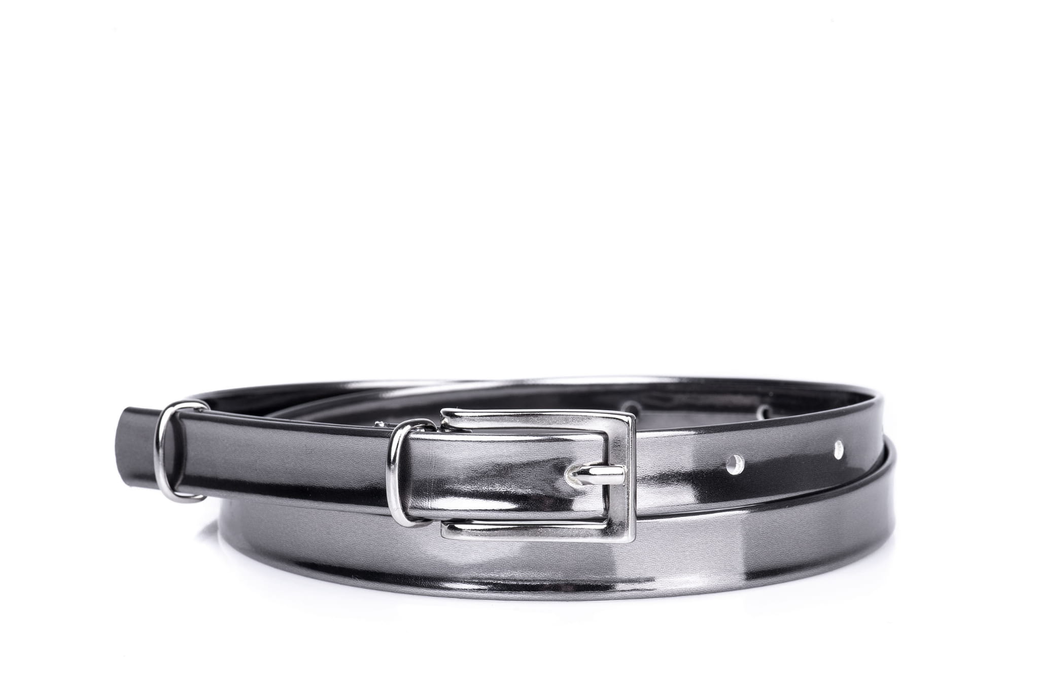 Pasek damski klasyczny stare srebro lakier 1,5 cm