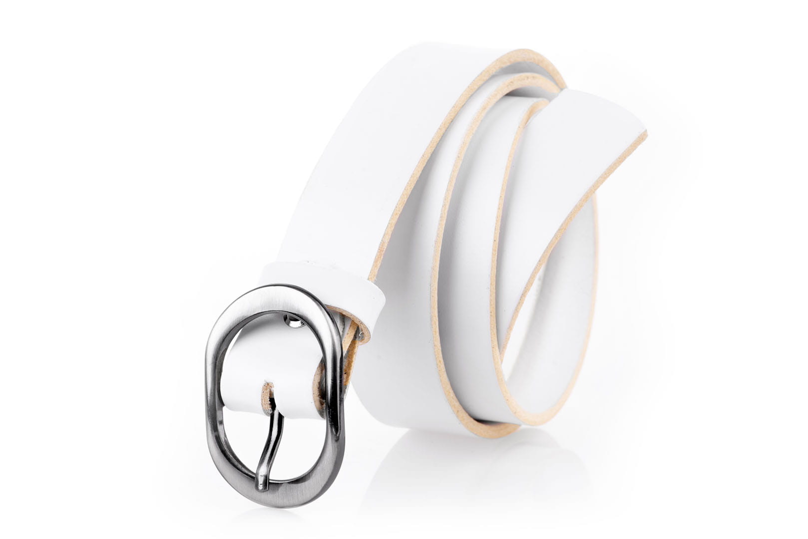 Elegancki pasek damski, w całości wykonany z jednego kawałka naturalnej skóry licowej.