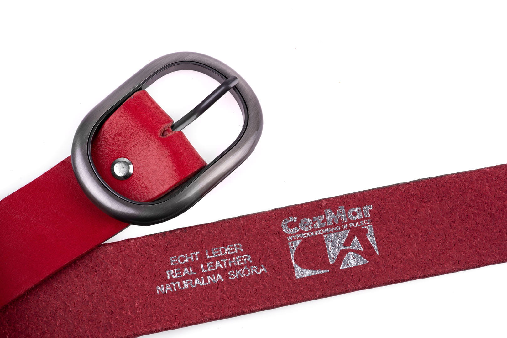 Pasek damski skórzany klasyczny czerwony 4 cm paczka 10szt