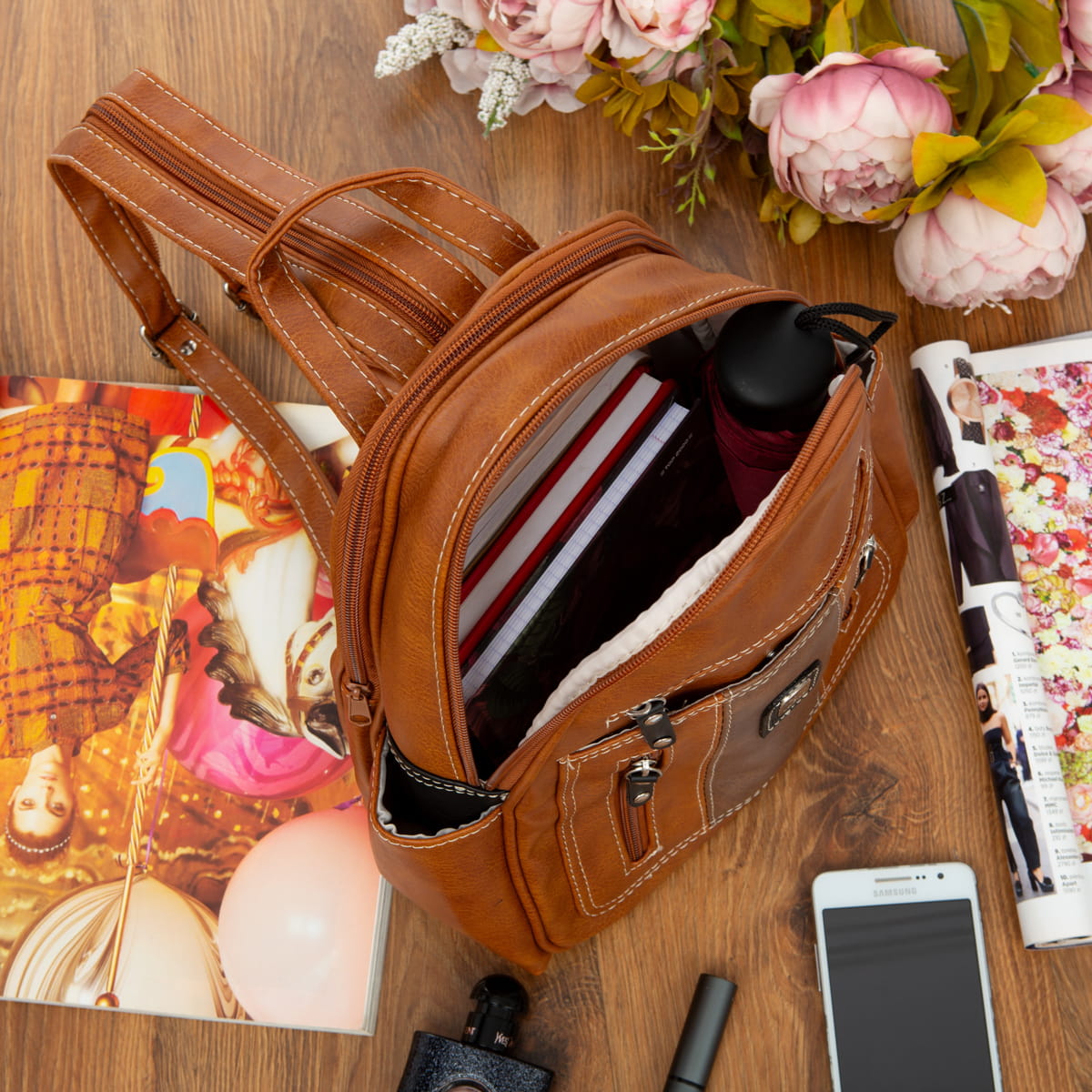 Plecak damski wykonany ze miękkiej skóry ekologicznej wysokiej jakości.