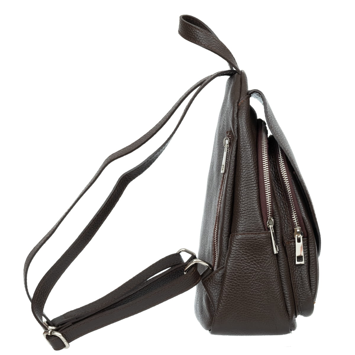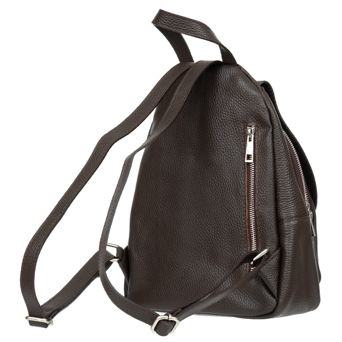 Dwukomorowy plecak z wysokogatunkowej, włoskiej skóry licowej. Naturalna faktura skóry. Przedmioty w plecaku można wygodnie posegregować dzięki czterem kieszeniom w różnych rozmiarach. Wyposażony jest w regulowane szelki, a także skórzany uchwyt do wygodnego zawieszenia plecaka lub noszenia w ręku.