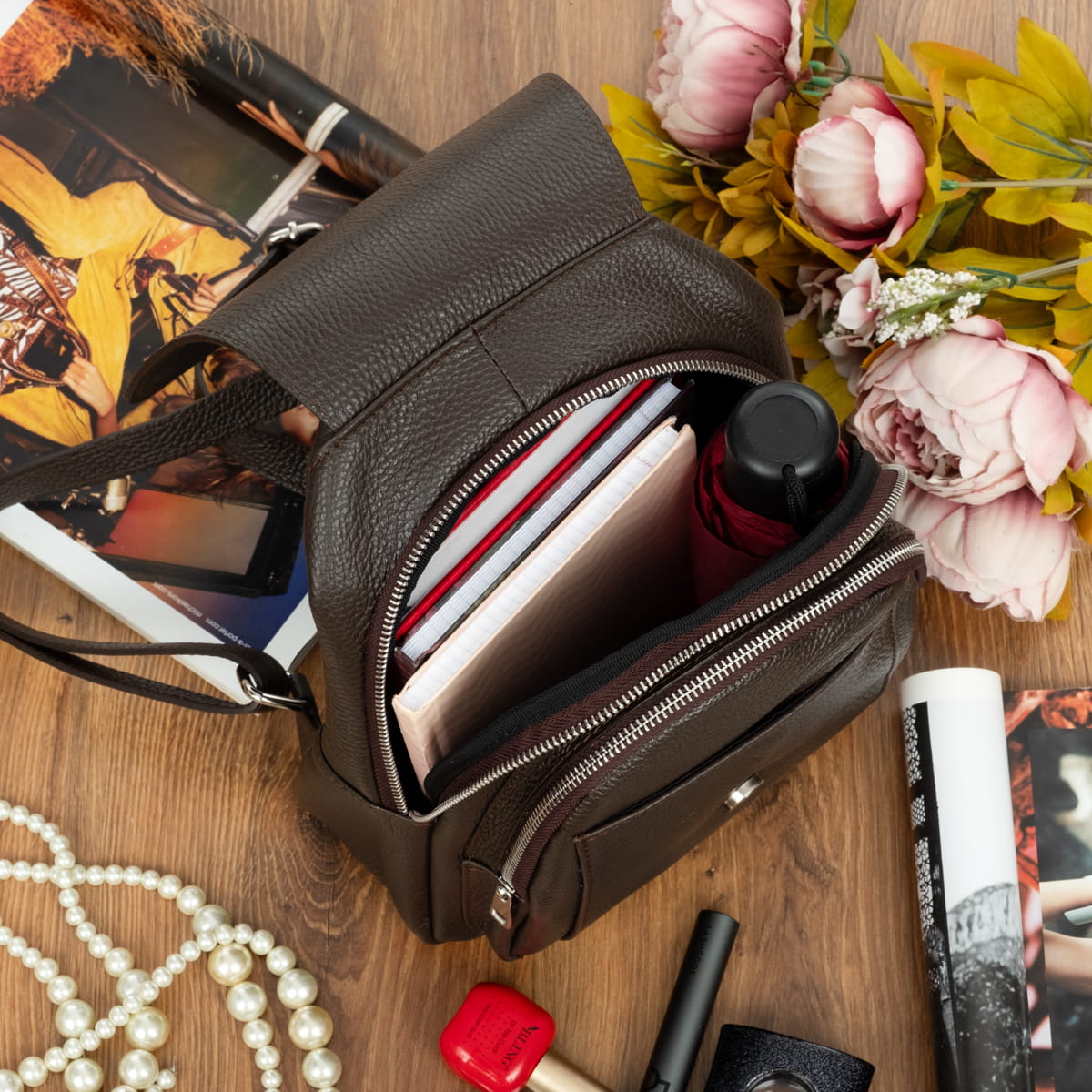 | kw | plecak damski, skórzany plecak, plecak z uchwytem |