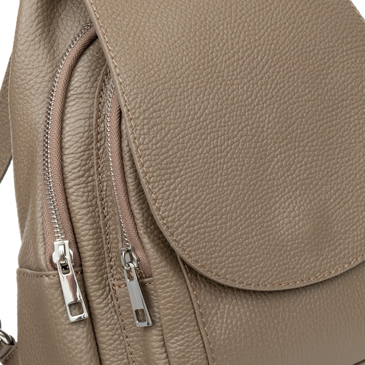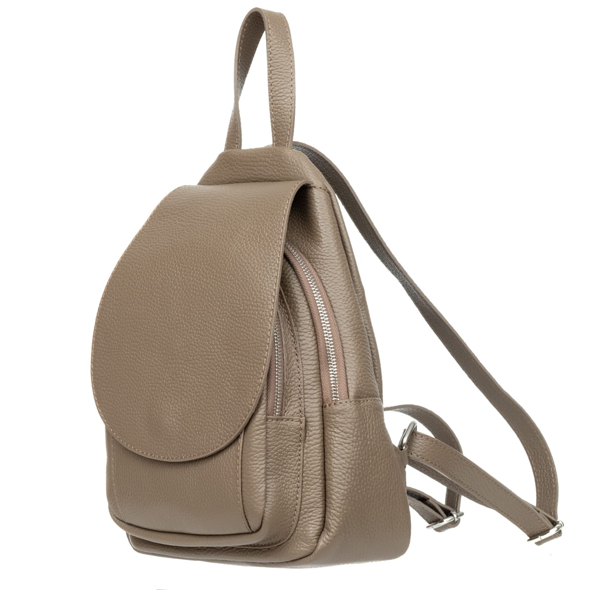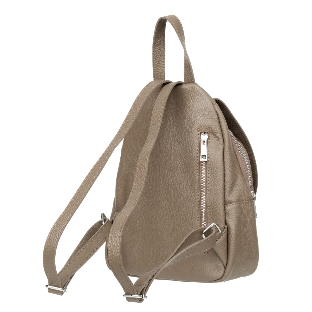 Dwukomorowy plecak z wysokogatunkowej, włoskiej skóry licowej. Naturalna faktura skóry. Przedmioty w plecaku można wygodnie posegregować dzięki czterem kieszeniom w różnych rozmiarach. Wyposażony jest w regulowane szelki, a także skórzany uchwyt do wygodnego zawieszenia plecaka lub noszenia w ręku.