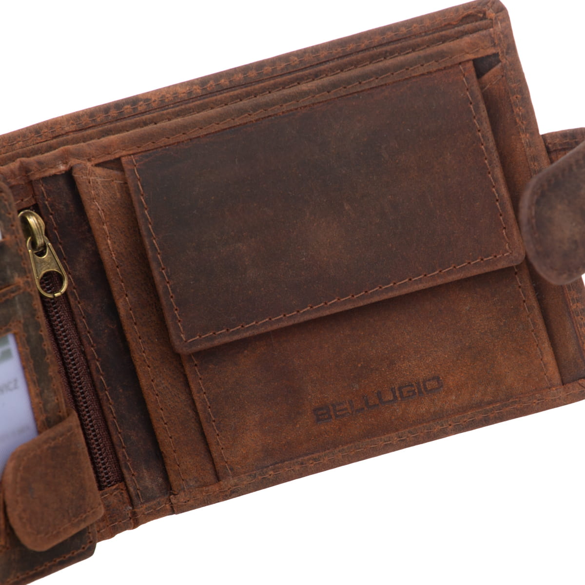 Rustykalny portfel wykonany z opalanej skóry naturalnej. Stylowy i praktyczny - ma duże przegrody na banknoty i dokumenty, ale bez problemu mieści się w kieszeni spodni. Jest odporny na przetarcia i różnego rodzaju zabrudzenia. Przy produkcji portfeli Bellugio szczególną uwagę przykłada się do detali, dzięki czemu są dopracowane w każdym szczególne i mogą być użytkowane przez wiele lat.