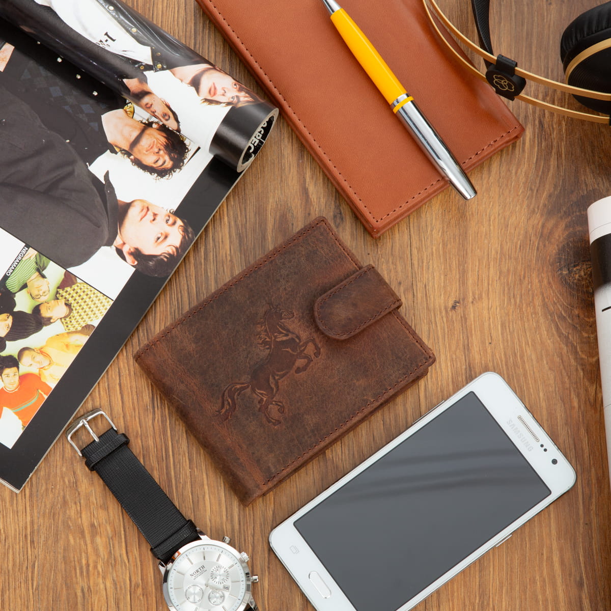 Portfel Skórzany Bellugio Koń RFID Ochrona kart Rust