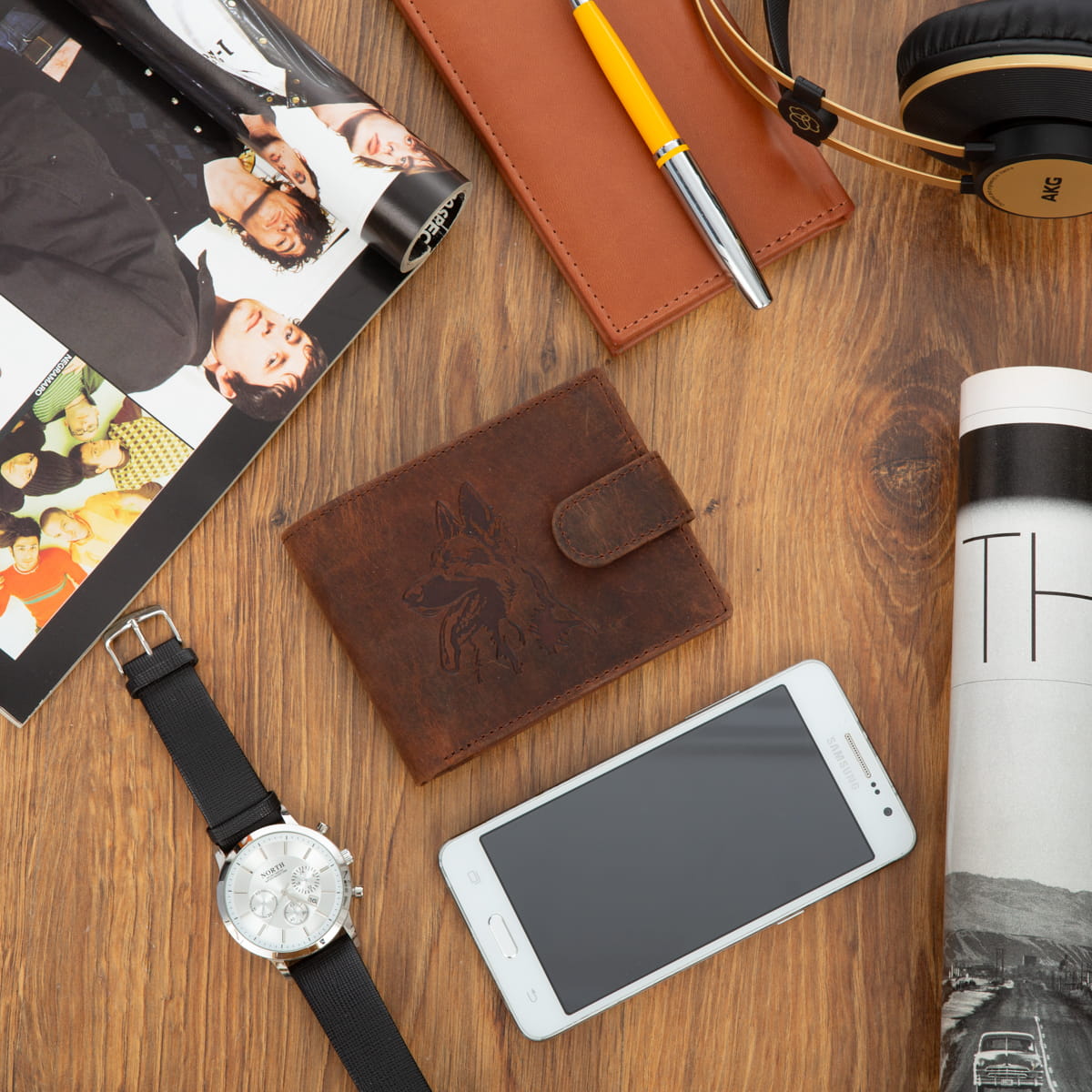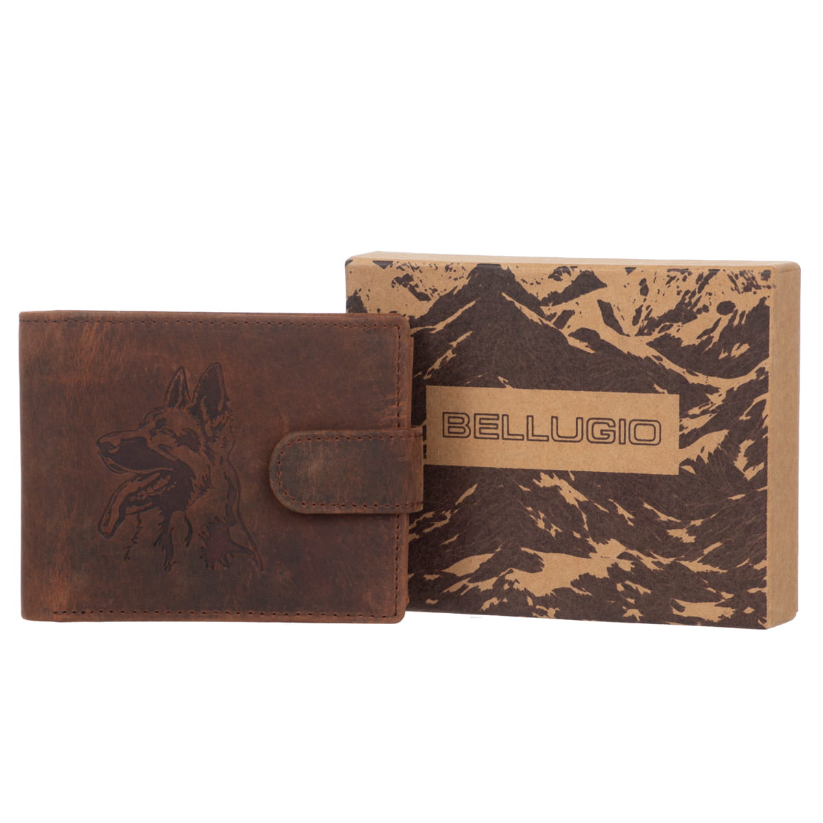 Portfel Skórzany Bellugio Pies RFID Ochrona kart Rust
