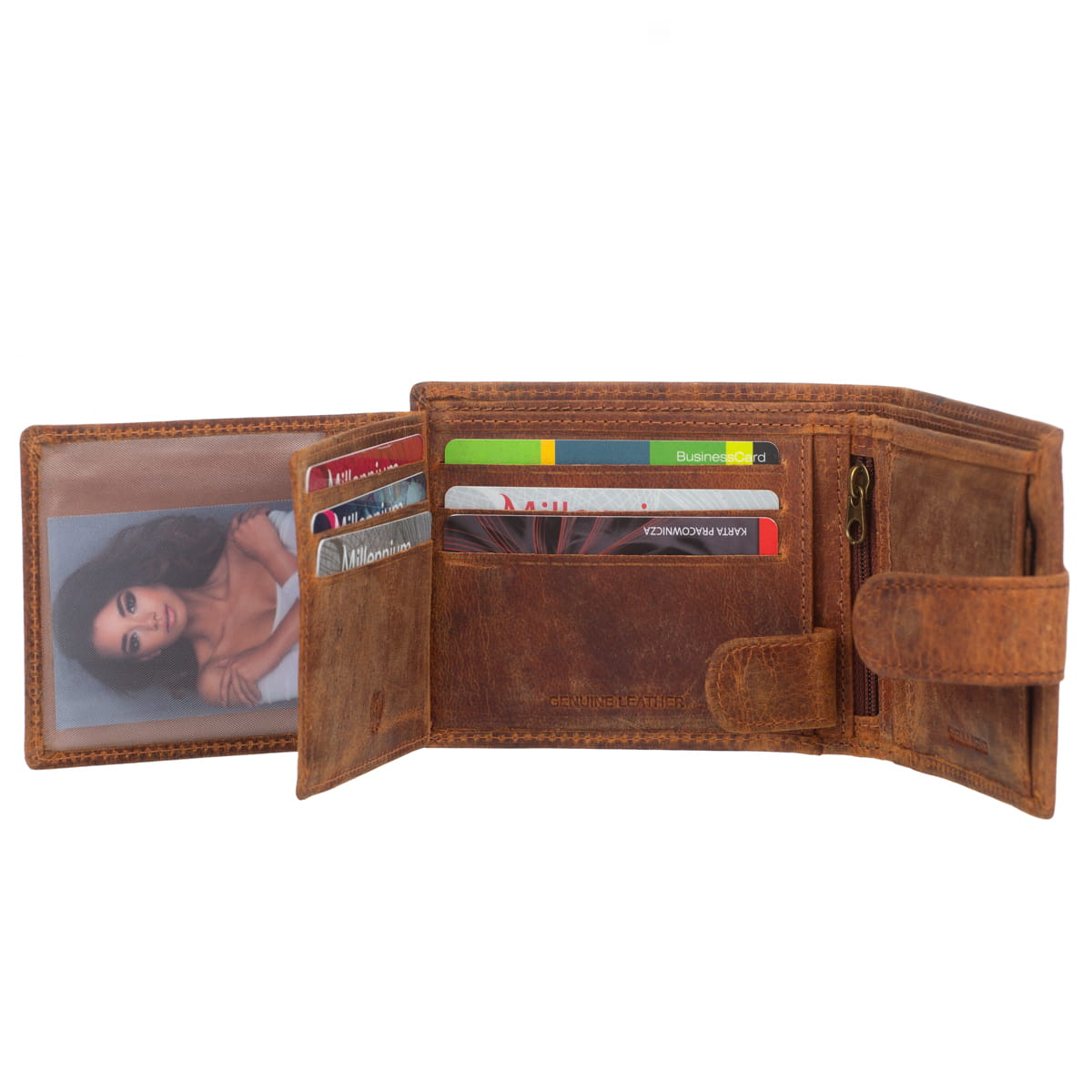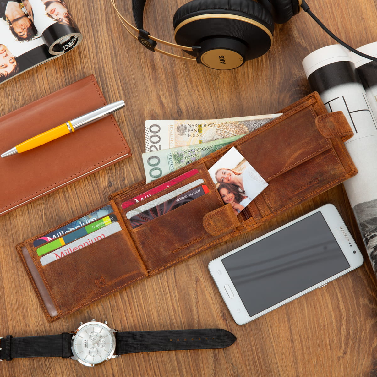 Rustykalny portfel wykonany z opalanej skóry naturalnej. Stylowy i praktyczny - ma duże przegrody na banknoty i dokumenty, ale bez problemu mieści się w kieszeni spodni. Jest odporny na przetarcia i różnego rodzaju zabrudzenia. Przy produkcji portfeli Bellugio szczególną uwagę przykłada się do detali, dzięki czemu są dopracowane w każdym szczególne i mogą być użytkowane przez wiele lat.