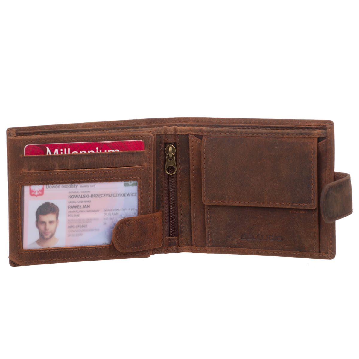 Rustykalny portfel wykonany z opalanej skóry naturalnej. Stylowy i praktyczny - ma duże przegrody na banknoty i dokumenty, ale bez problemu mieści się w kieszeni spodni. Jest odporny na przetarcia i różnego rodzaju zabrudzenia. Przy produkcji portfeli Bellugio szczególną uwagę przykłada się do detali, dzięki czemu są dopracowane w każdym szczególne i mogą być użytkowane przez wiele lat.