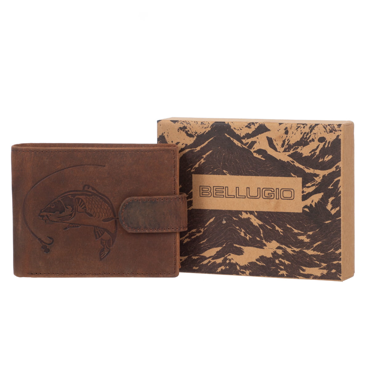 Portfel Skórzany Bellugio Ryba RFID Ochrona kart Rust
