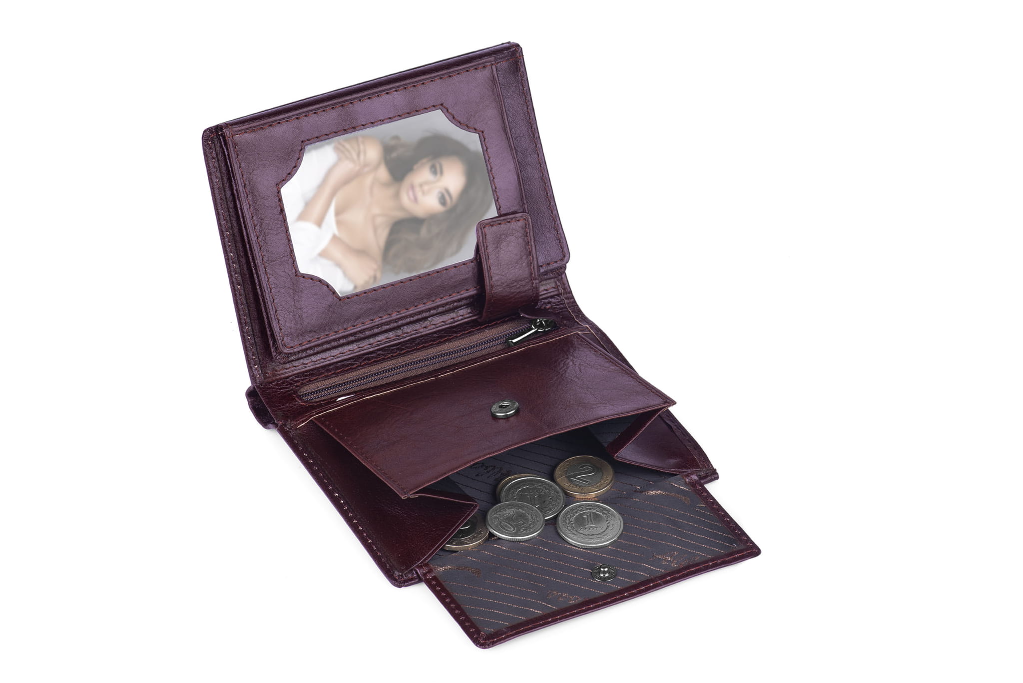 - kieszonka na bilon, zamykana na zatrzask