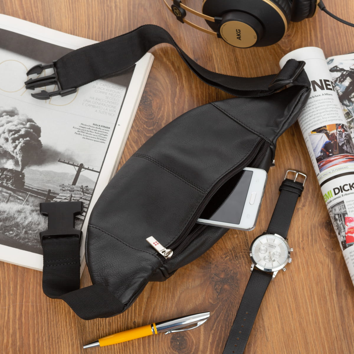 Saszetka Biodrowa Nerka Skórzana Albatross Czarna
