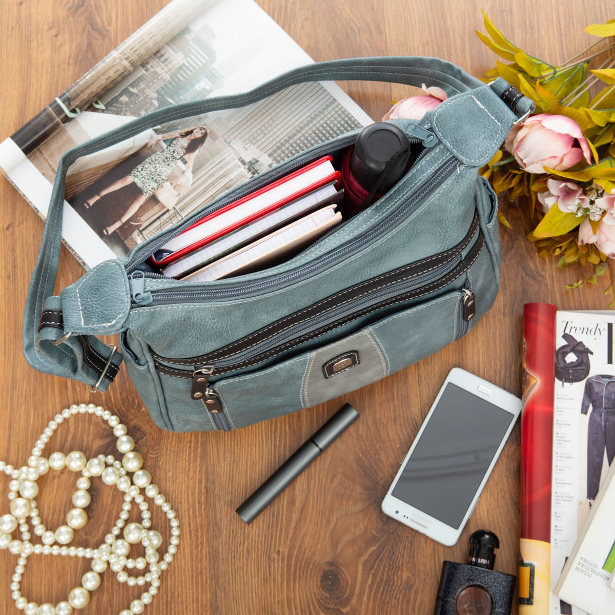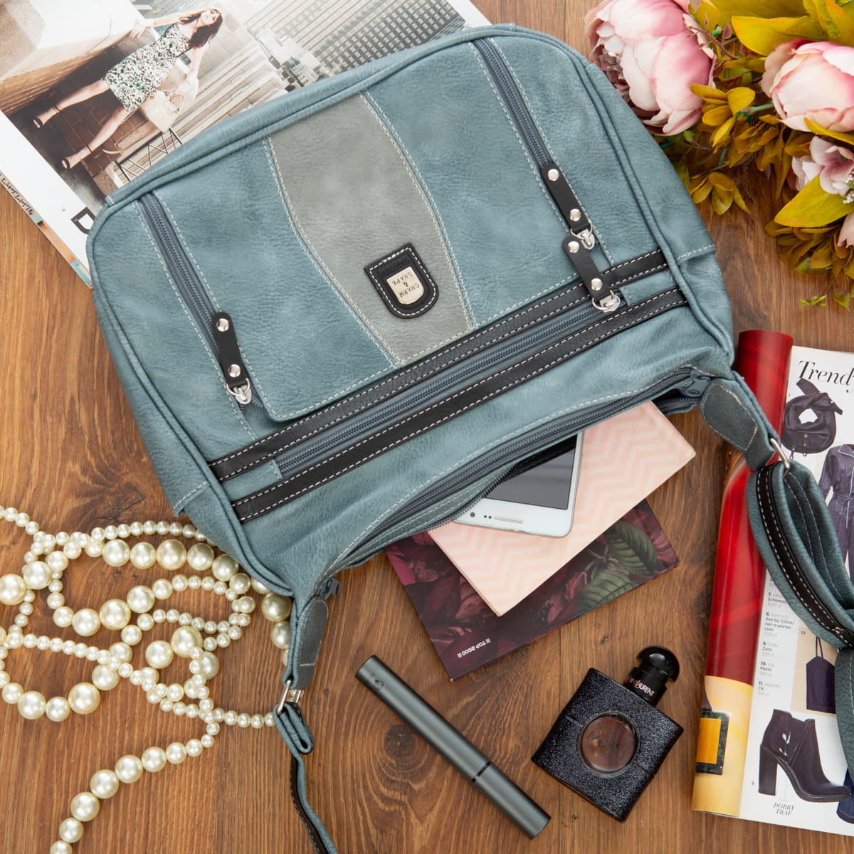 - zamykana na magnetyczny zatrzask przednia kieszeń