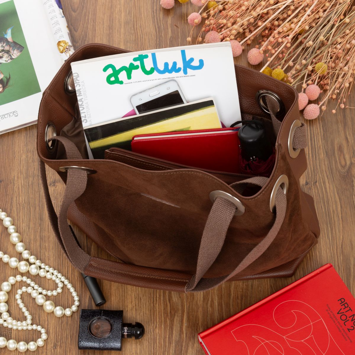 Torba damska o formie worka średniej wielkości. Wykonana z włoskiej skóry naturalnej.