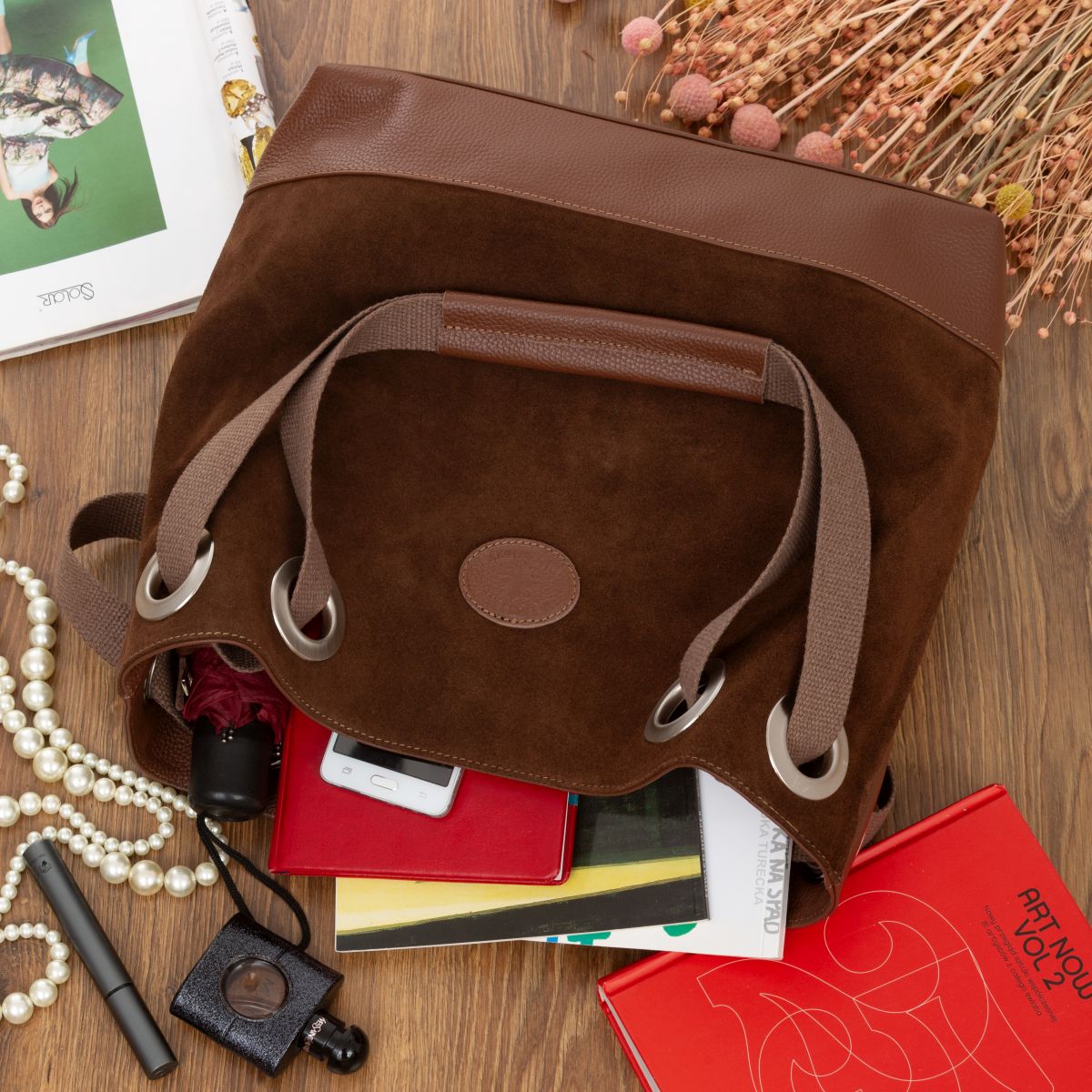 - przód wykonany z naturalnej skóry zamszowej