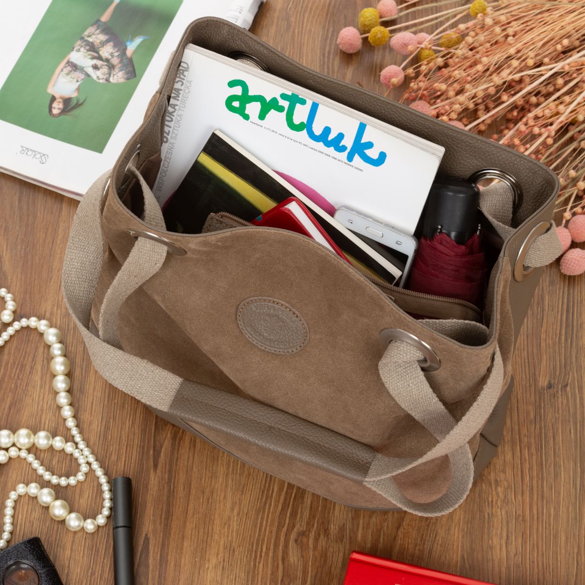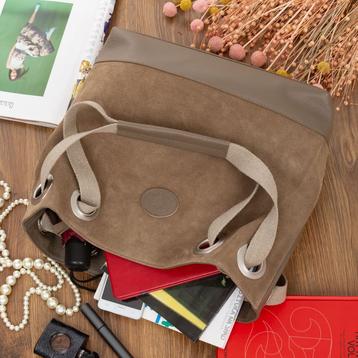 Torba Damska Skórzana Vera Pelle Borsa Taupe
