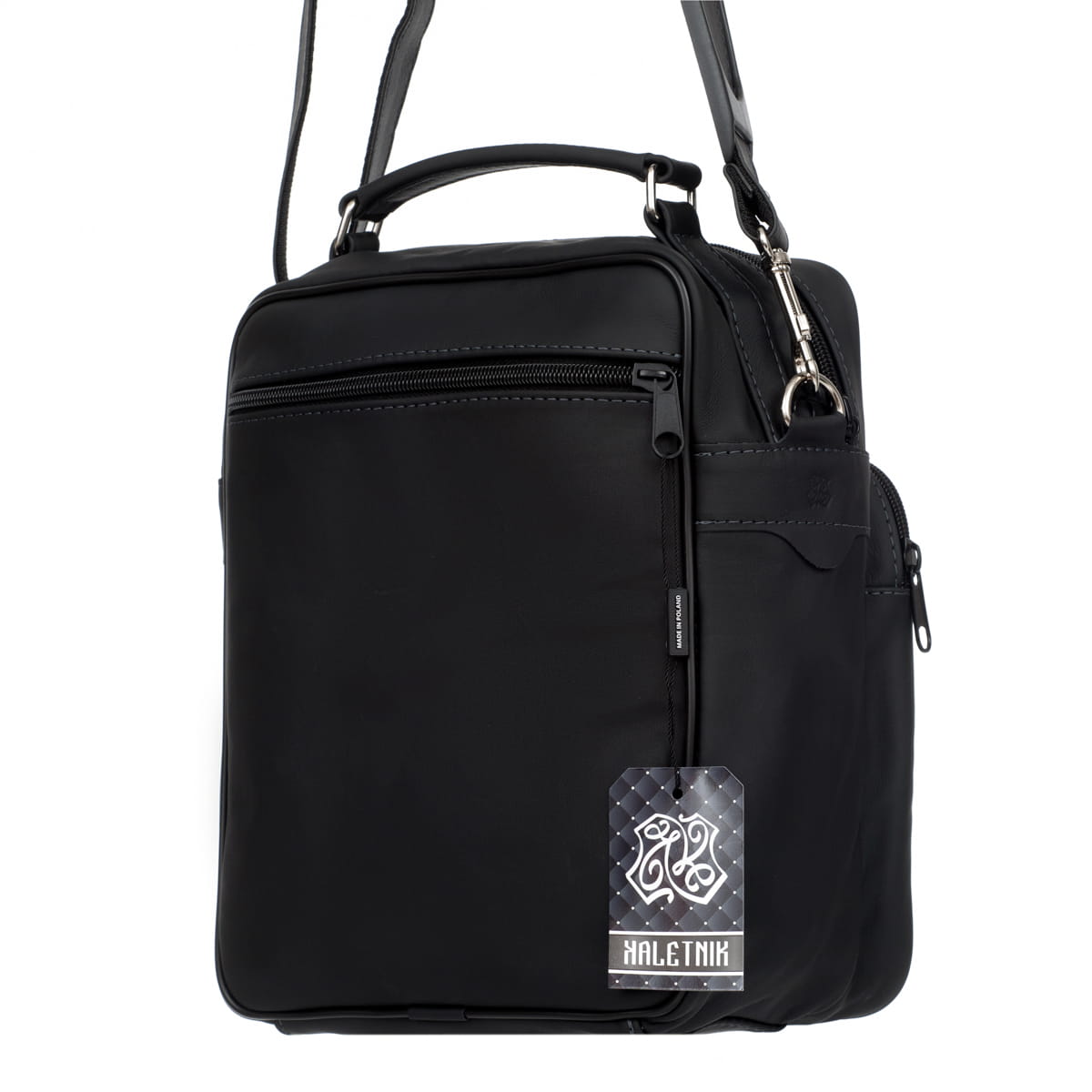 Duża torba Kaletnik Odon wykonana z naturalnej skóry licowej. Dwie komory i trzy kieszenie w różnych rozmiarach pozwalają wygodnie posegregować rzeczy w torbie. Przystosowana do noszenia w ręku i na ramieniu.