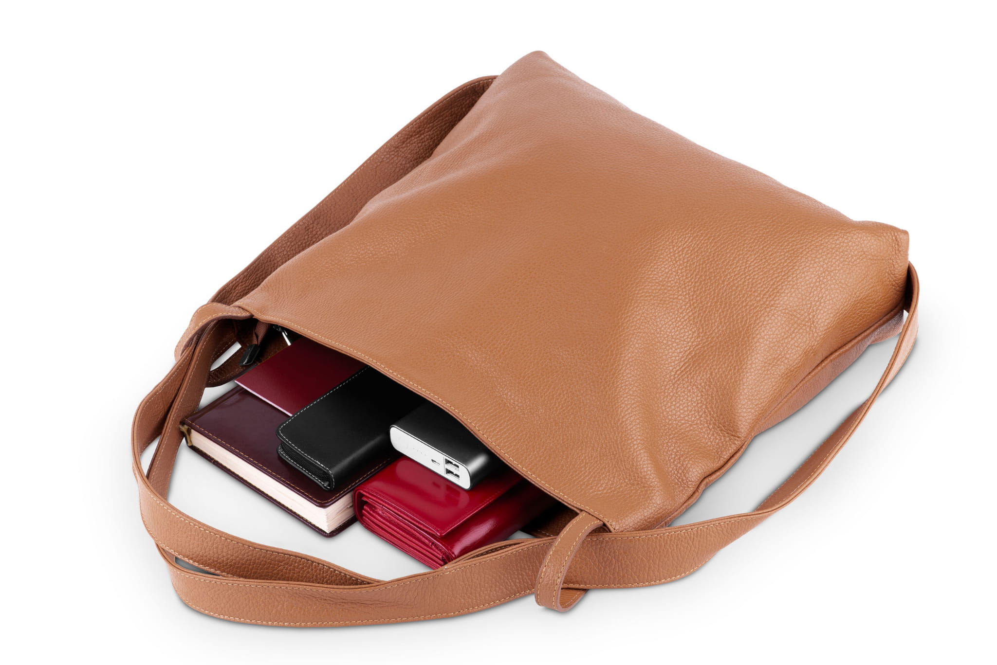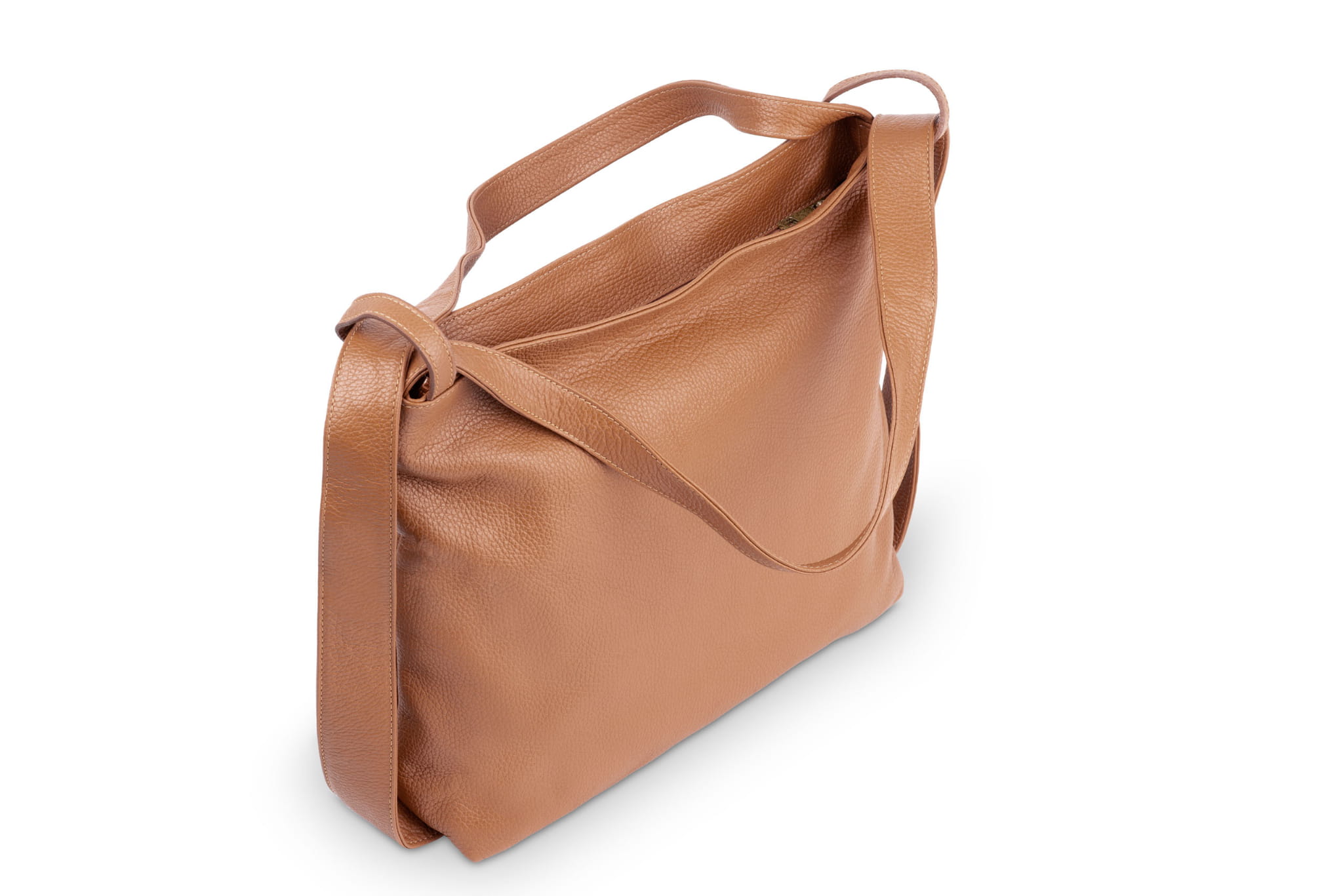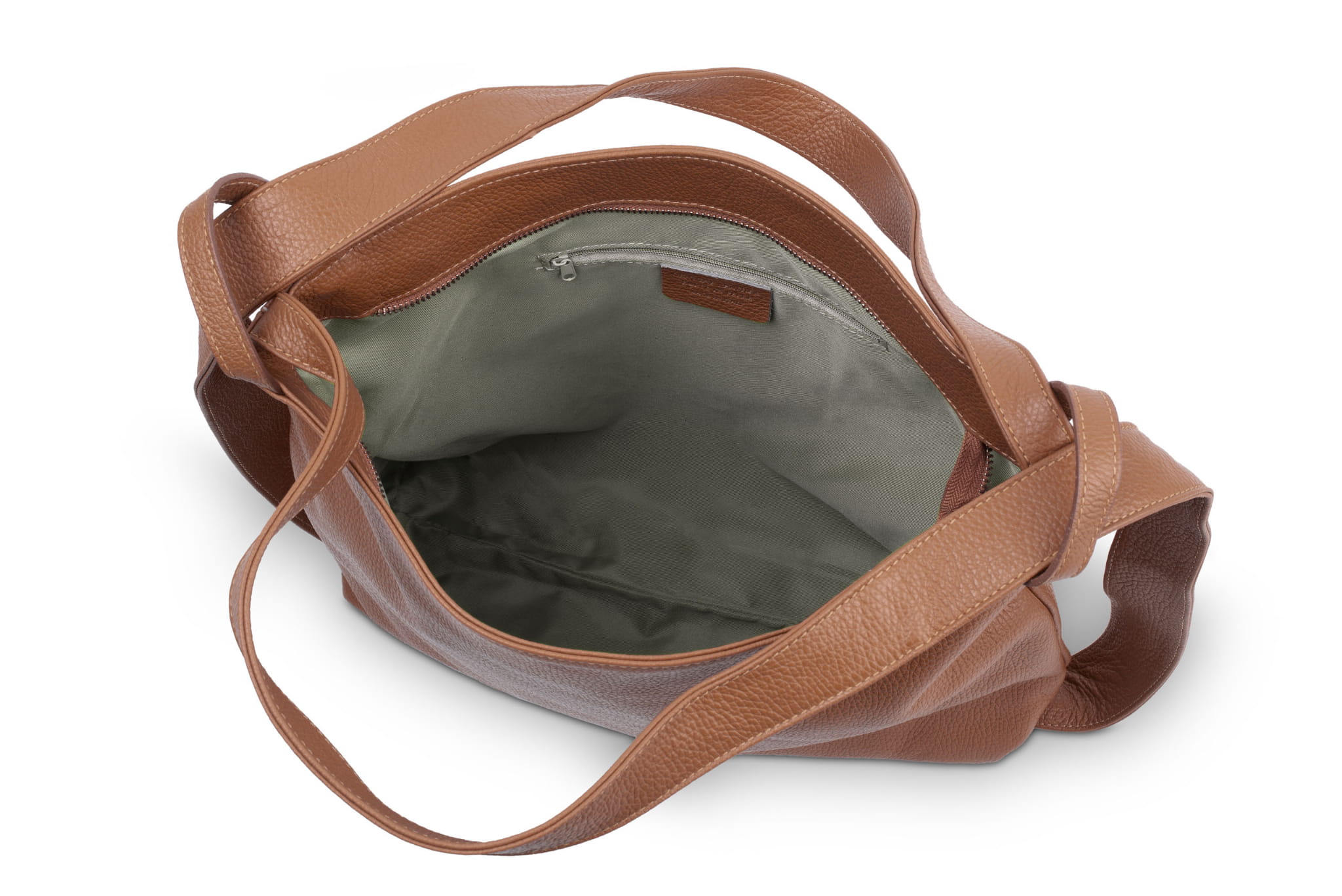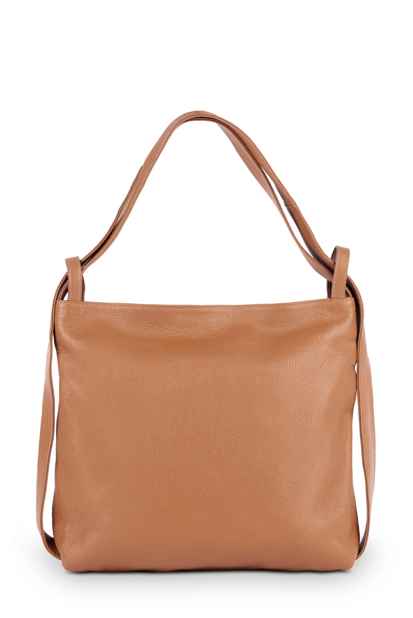 Bombowa torba na ramię, którą można zmienić w plecak. Materiał z którego jest uszyta to naturalna, włoska skóra licowa. Skóra miękka i miła w dotyku a jednocześnie wytrzymała.