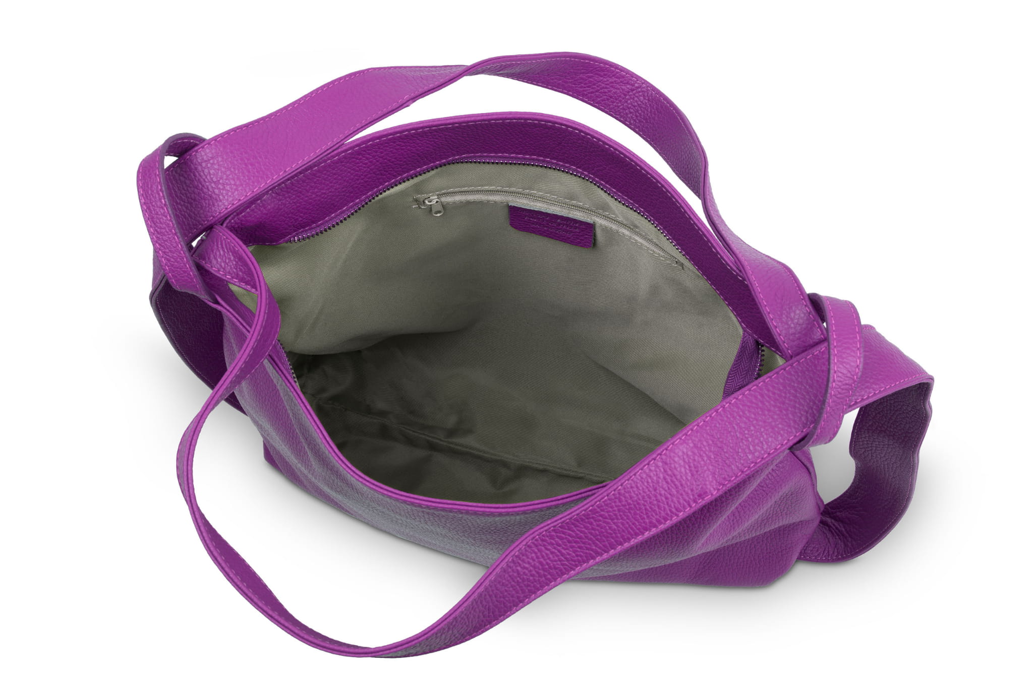 Bombowa torba na ramię, którą można zmienić w plecak. Materiał z którego jest uszyta to naturalna, włoska skóra licowa. Skóra miękka i miła w dotyku a jednocześnie wytrzymała.