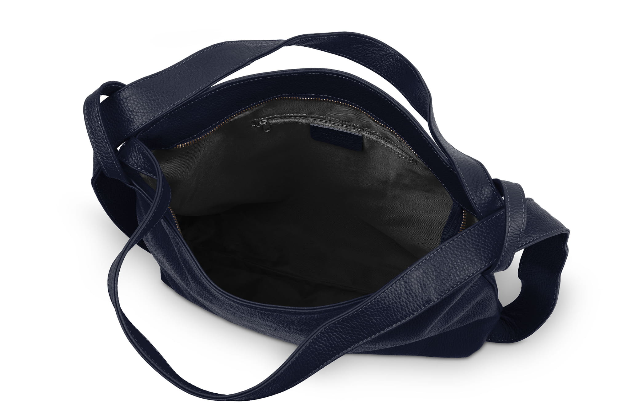 Bombowa torba na ramię, którą można zmienić w plecak. Materiał z którego jest uszyta to naturalna, włoska skóra licowa. Skóra miękka i miła w dotyku a jednocześnie wytrzymała.