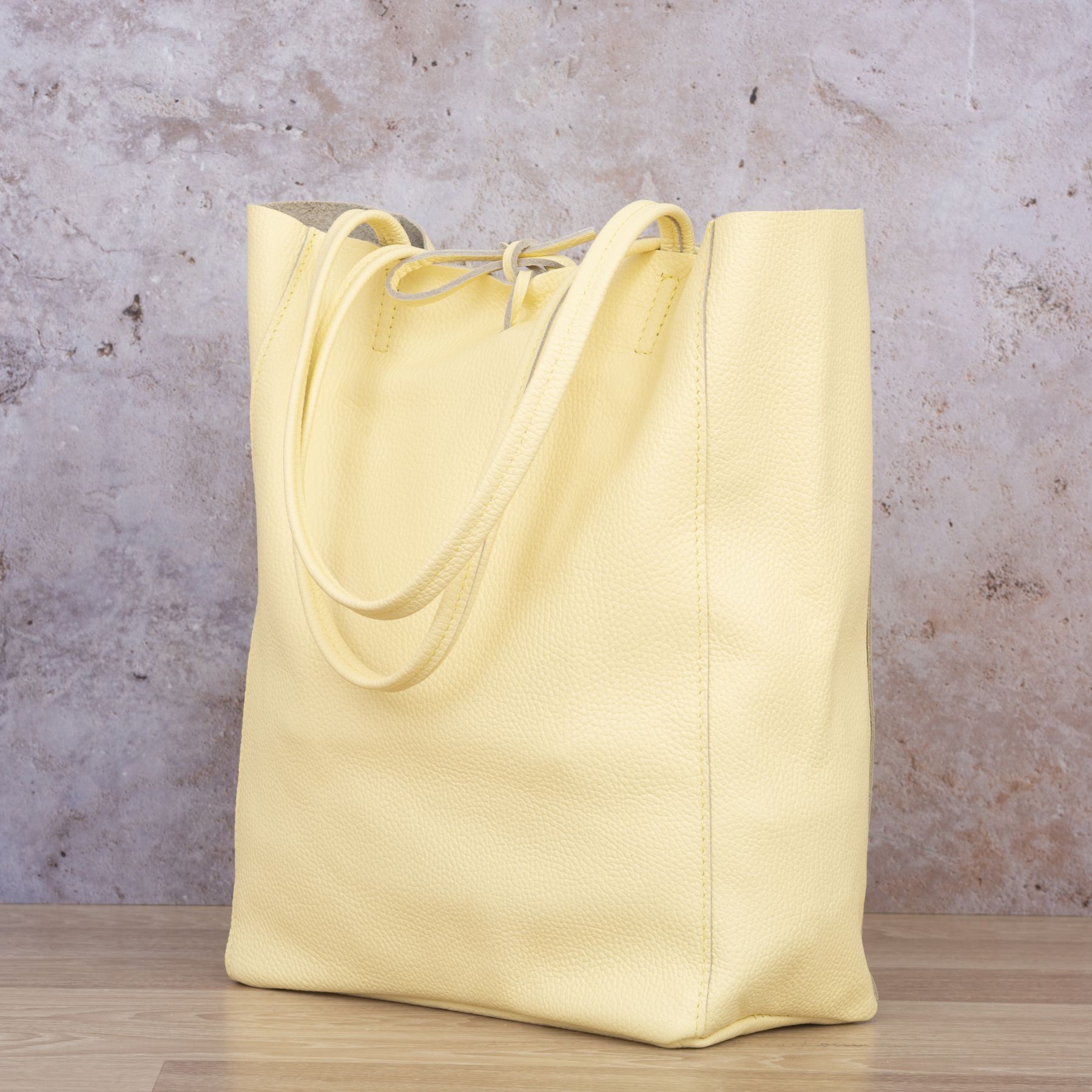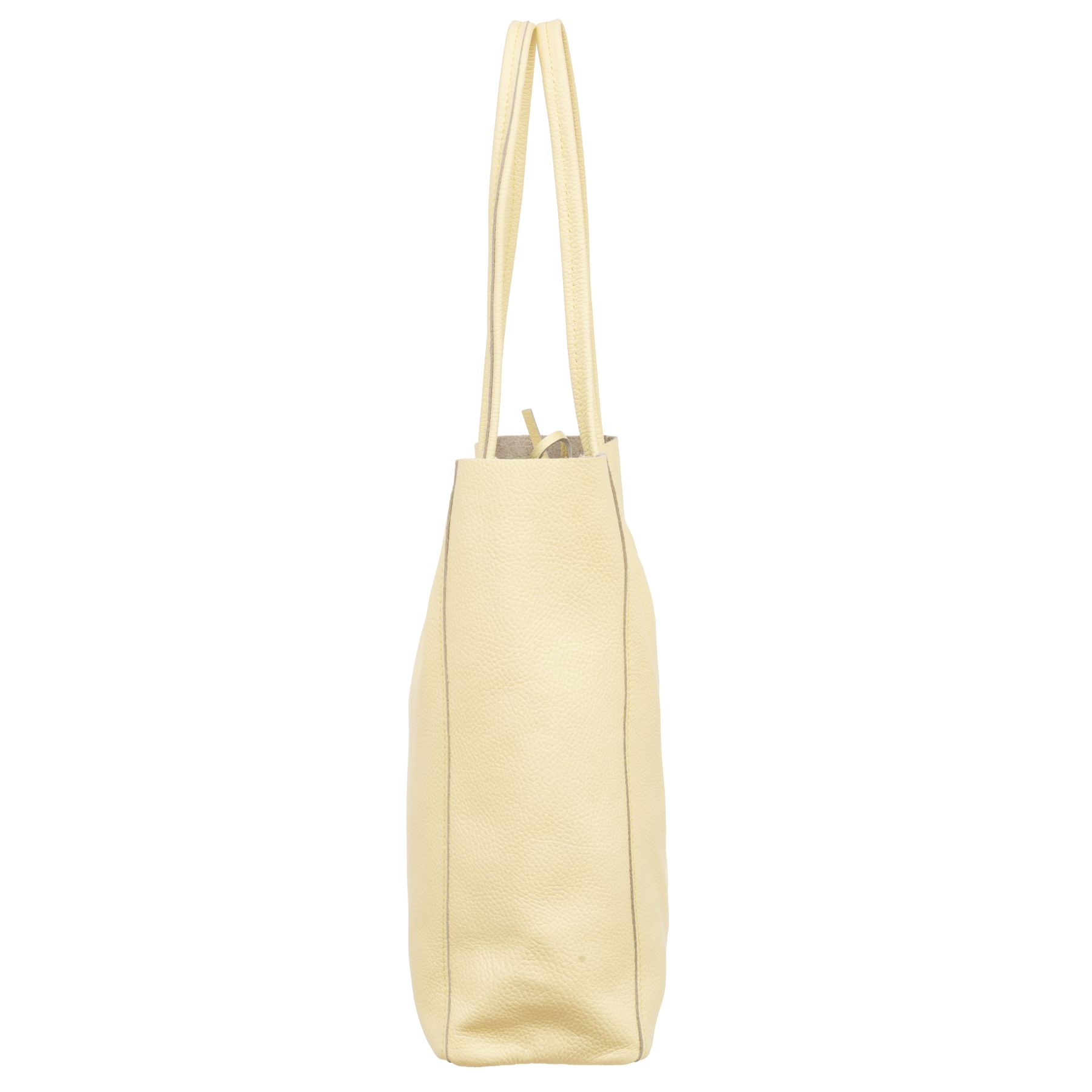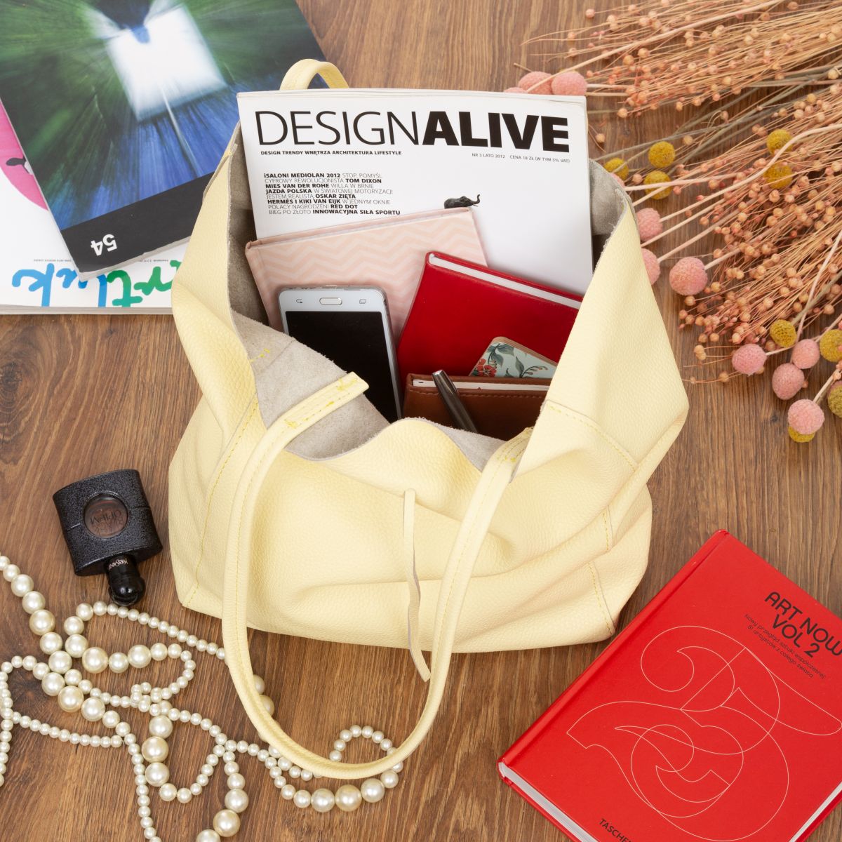 Pojemna włoska torba damska z usztywnianym dnem. Wykonana z wysokogatunkowej, naturalnej skóry licowej. Dzięki zastosowaniu grubej skóry torba jest mocna i nieprzemakalna. Z dużym zapasem zmieszczą się w niej przedmioty formatu A4. Praktycznym dodatkiem jest, zamykana na suwak, wewnętrzna kieszeń na drobiazgi.