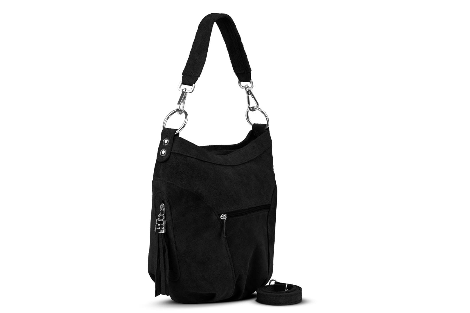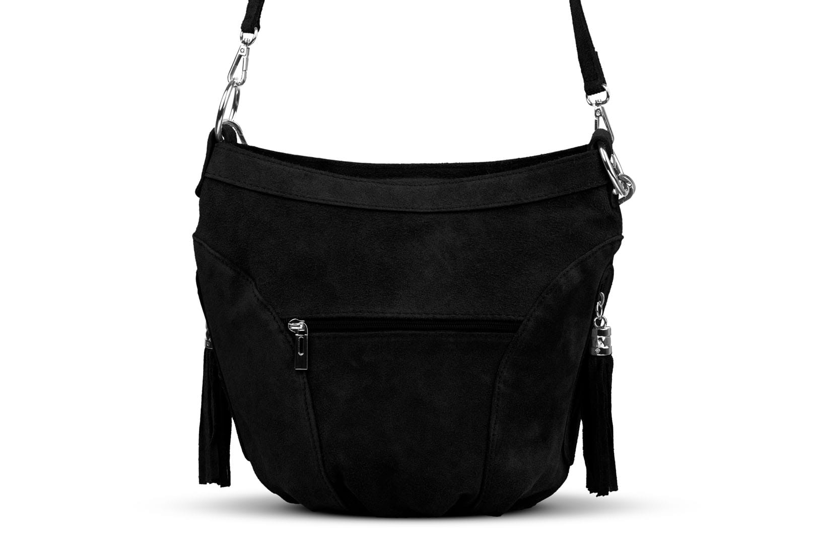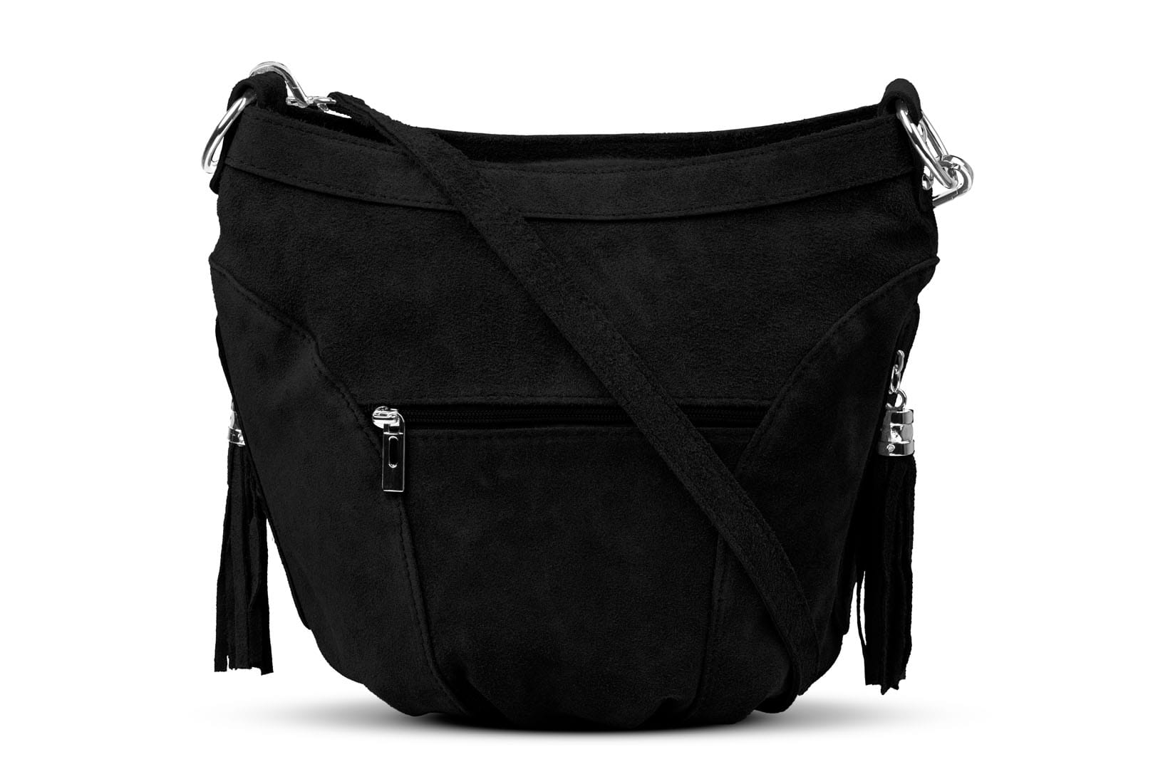 Torebka damska wykonana z wysokogatunkowego włoskiego zamszu naturalnego. Po obu stronach torebki znajdują się dwie praktyczne kieszonki. Dzięki dwóm paskom różnej długości, torebkę można nosić w ręku lub na ramieniu.