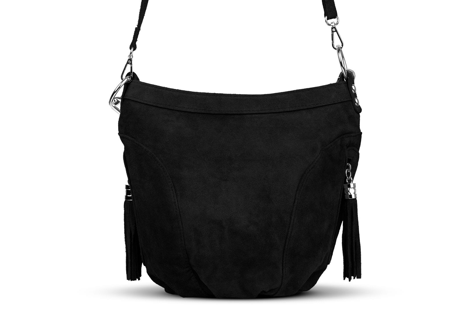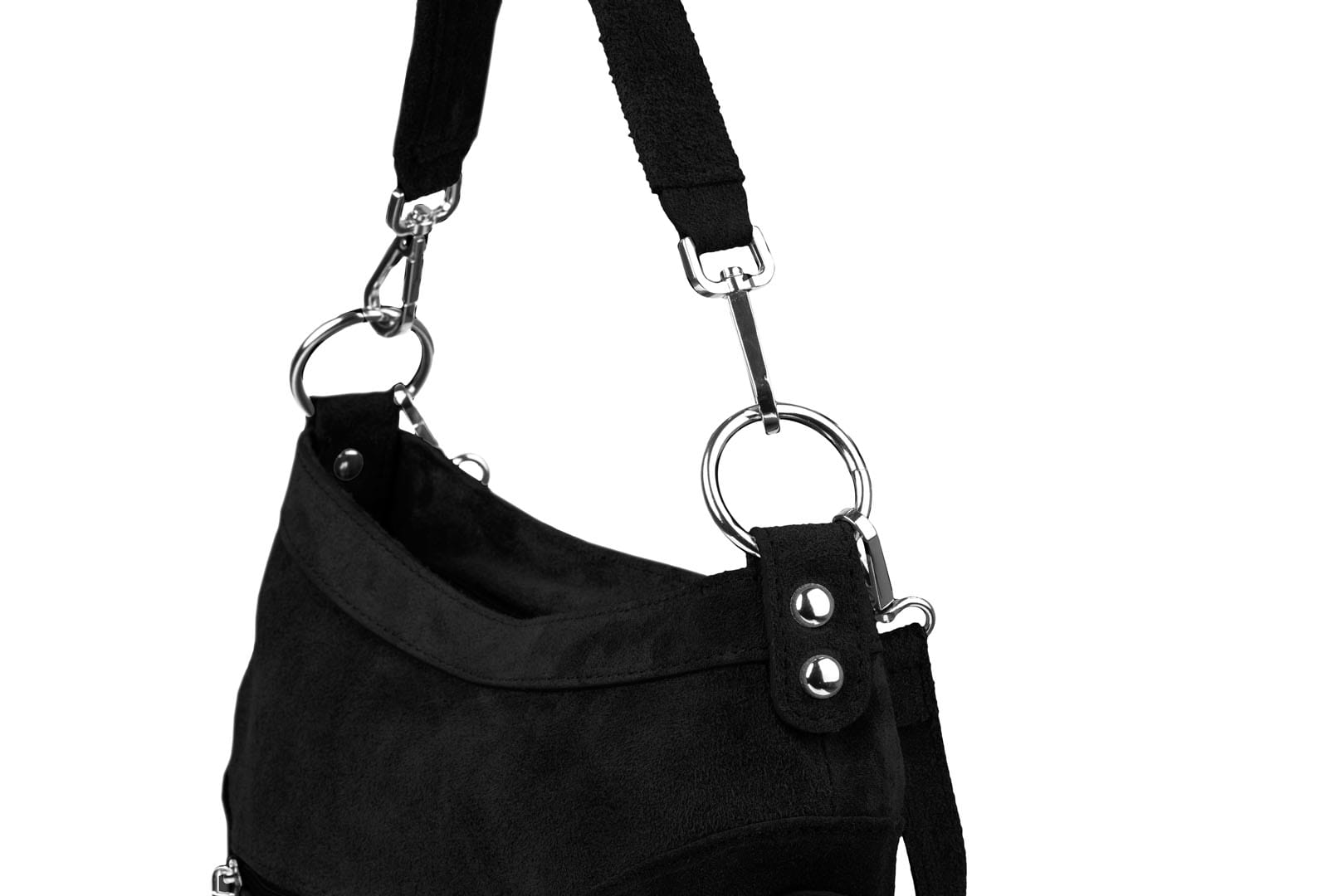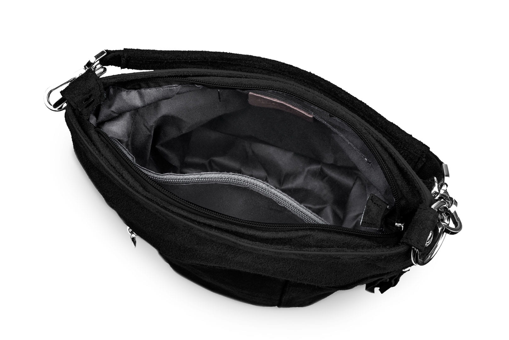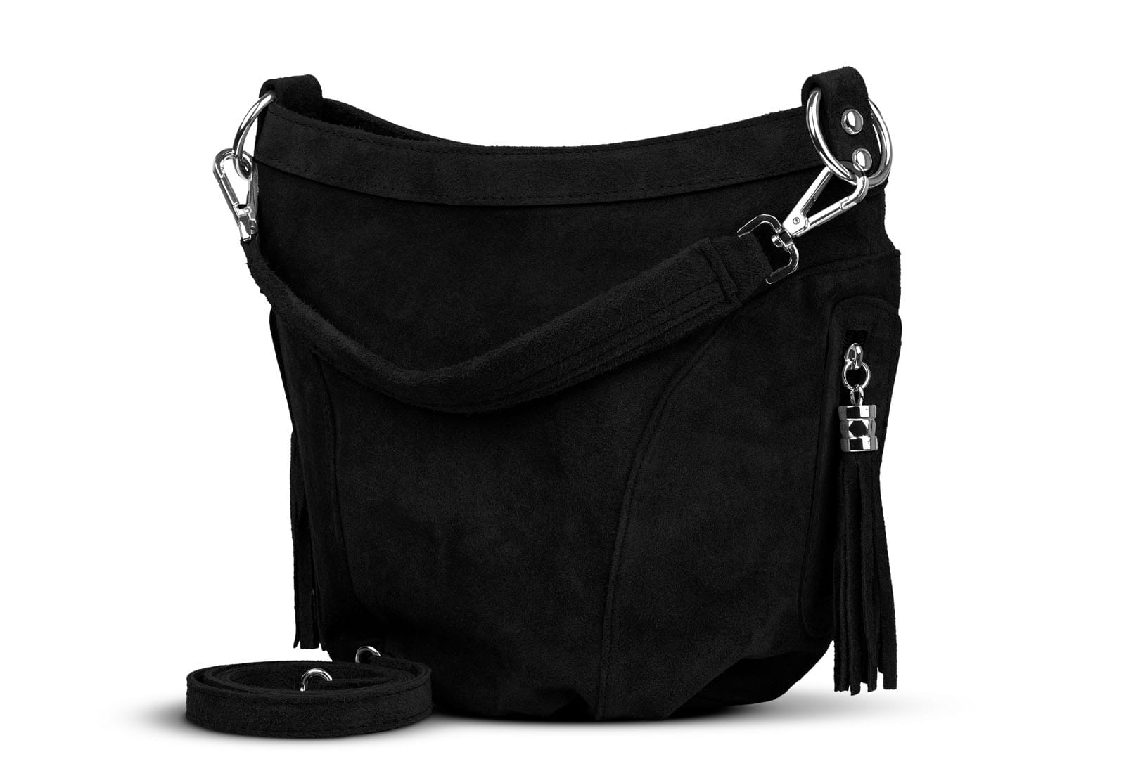 Torebka damska wykonana z wysokogatunkowego włoskiego zamszu naturalnego. Po obu stronach torebki znajdują się dwie praktyczne kieszonki. Dzięki dwóm paskom różnej długości, torebkę można nosić w ręku lub na ramieniu.