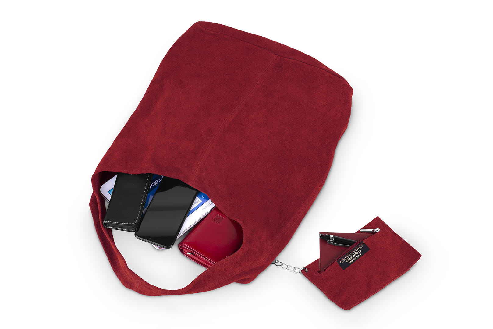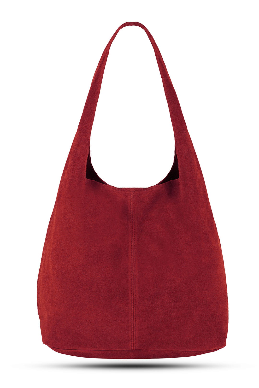 Torba Skórzana Vera Pelle Zamszowy Worek Czerwona