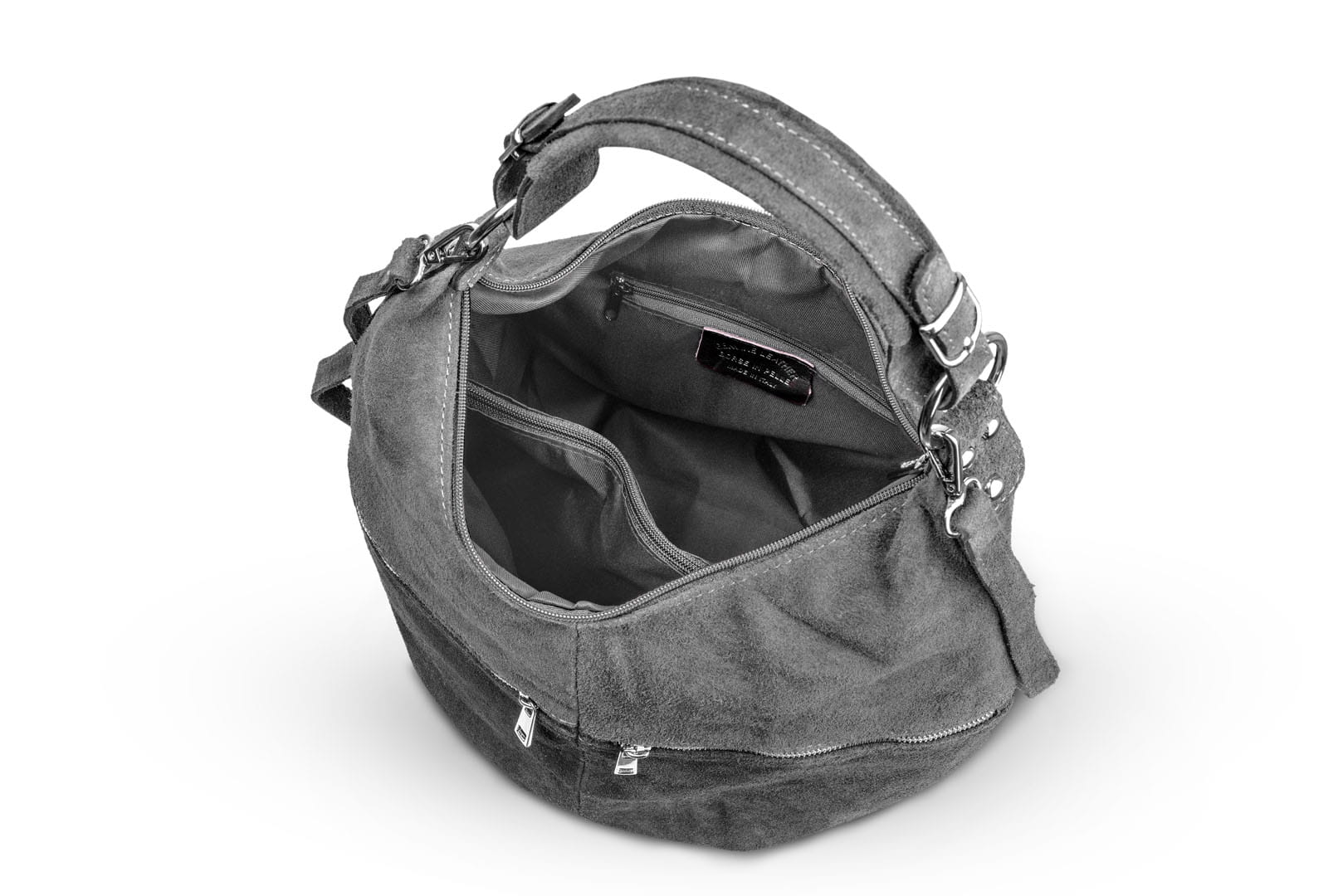 Torba Skórzana Vera Pelle Zamszowy Worek Grafitowa