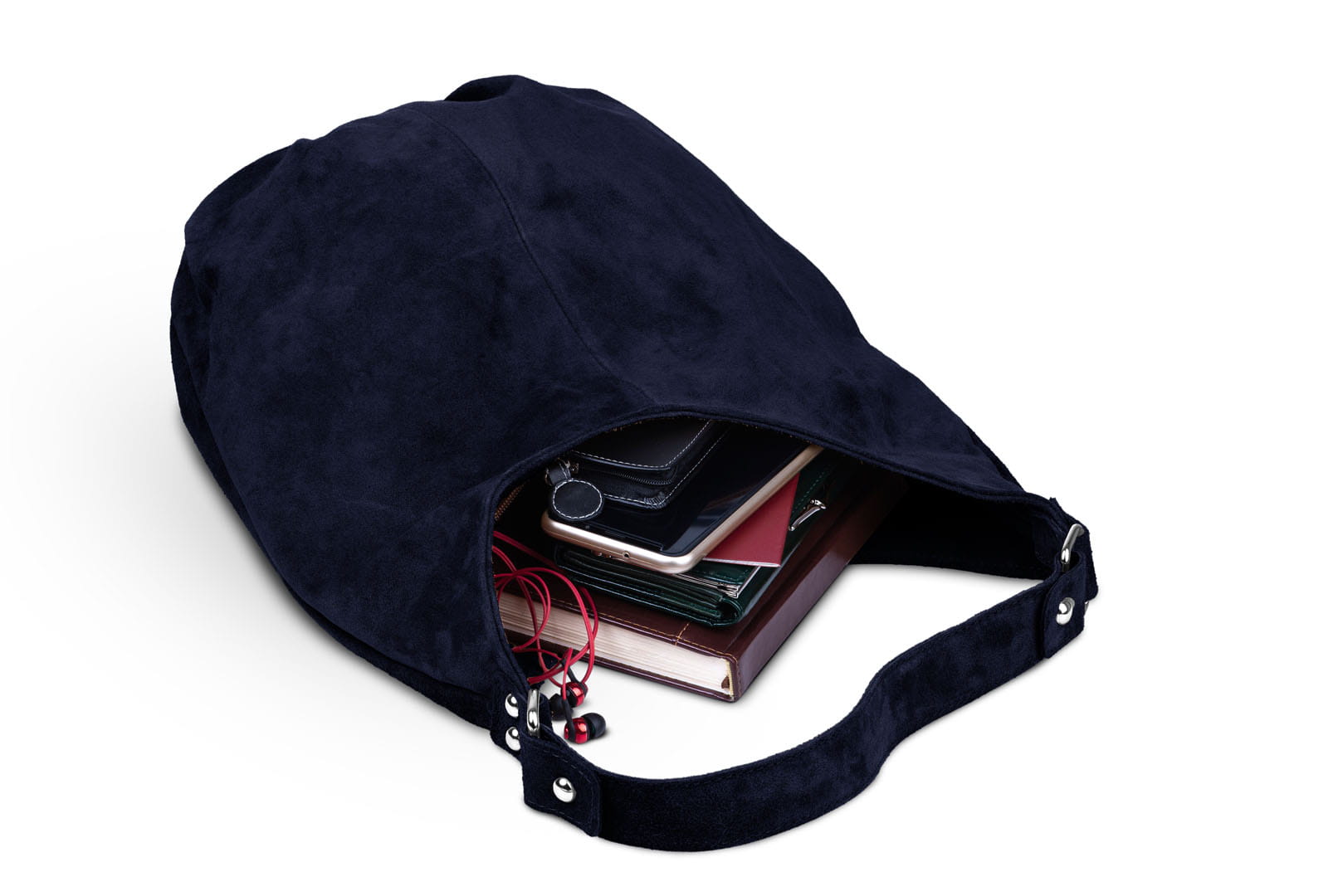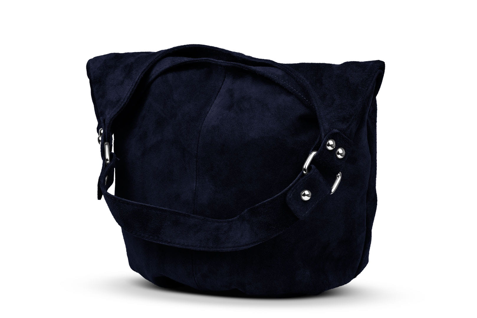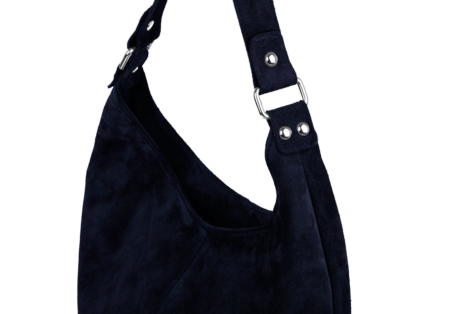 Torba Skórzana Vera Pelle Zamszowy Worek Granatowa