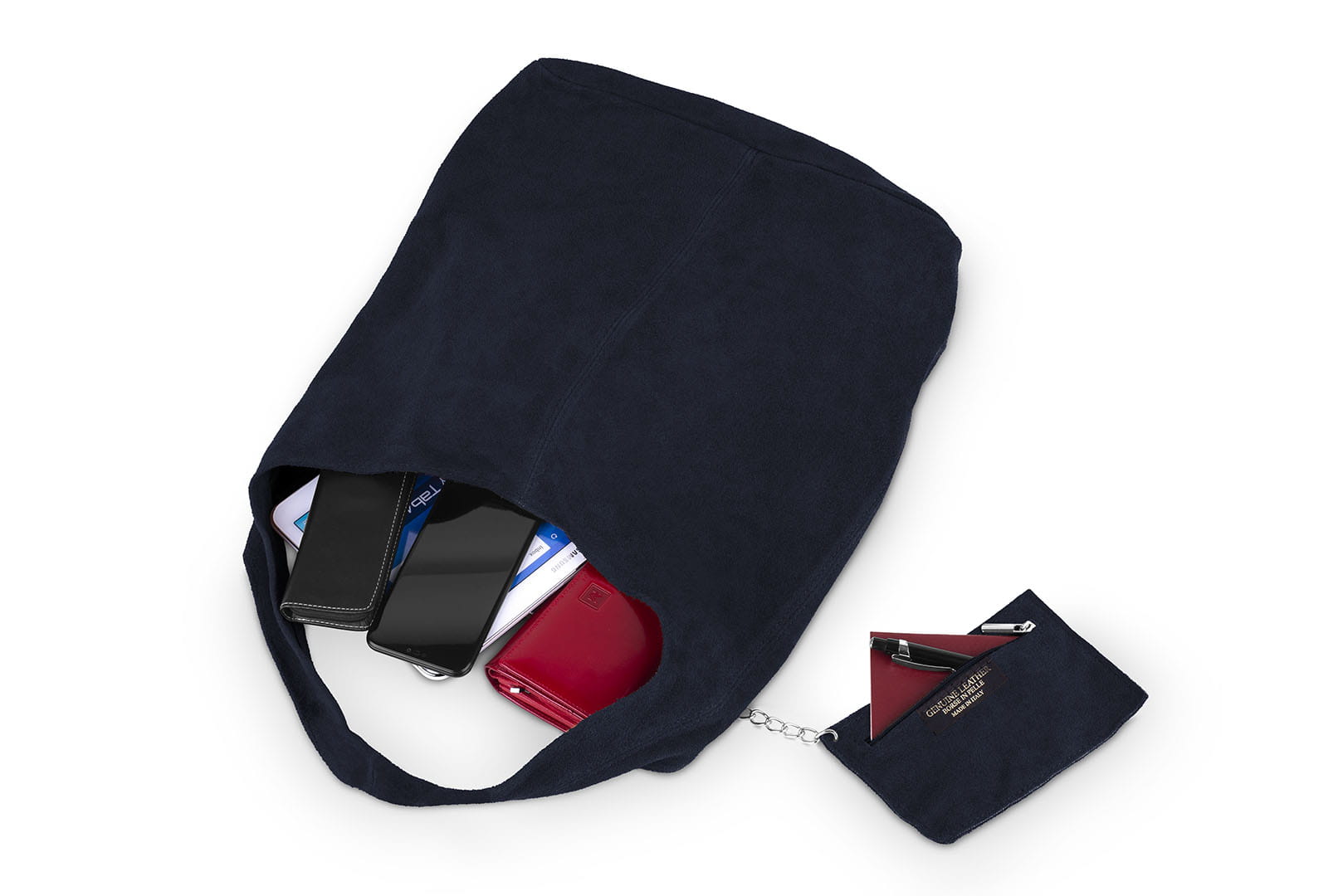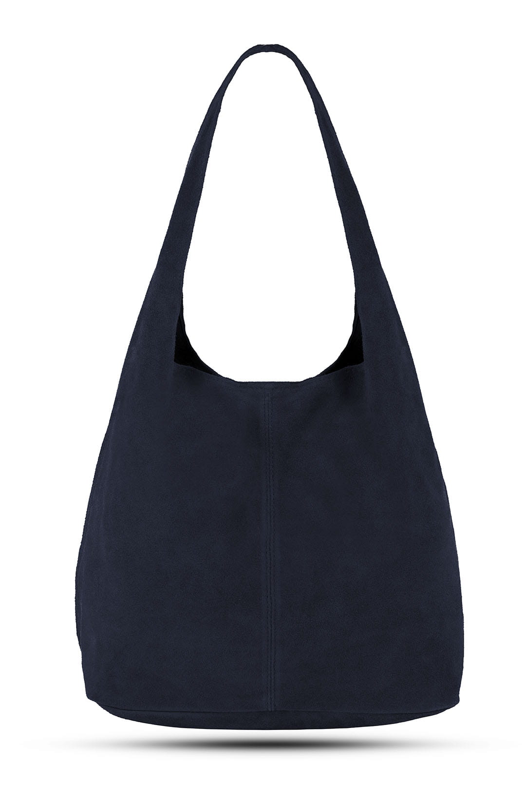 Torba Skórzana Vera Pelle Zamszowy Worek Granatowa