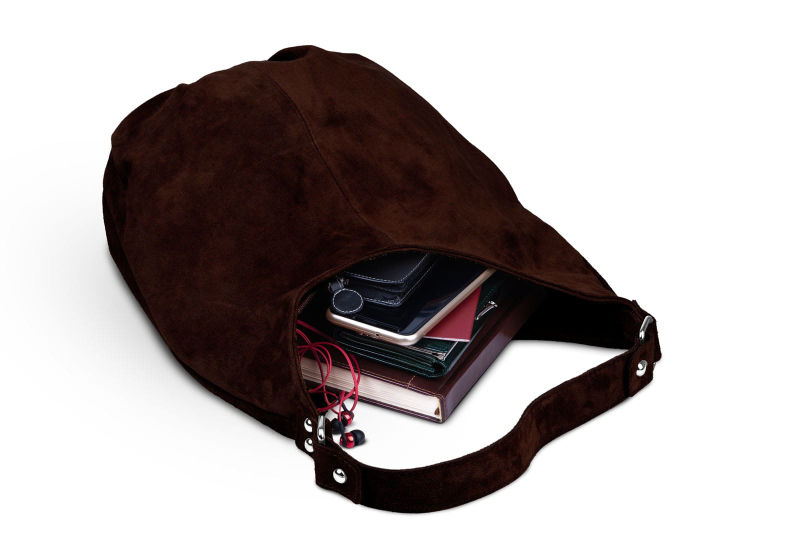 Torba damska wykonana z wysokogatunkowego włoskiego zamszu naturalnego.