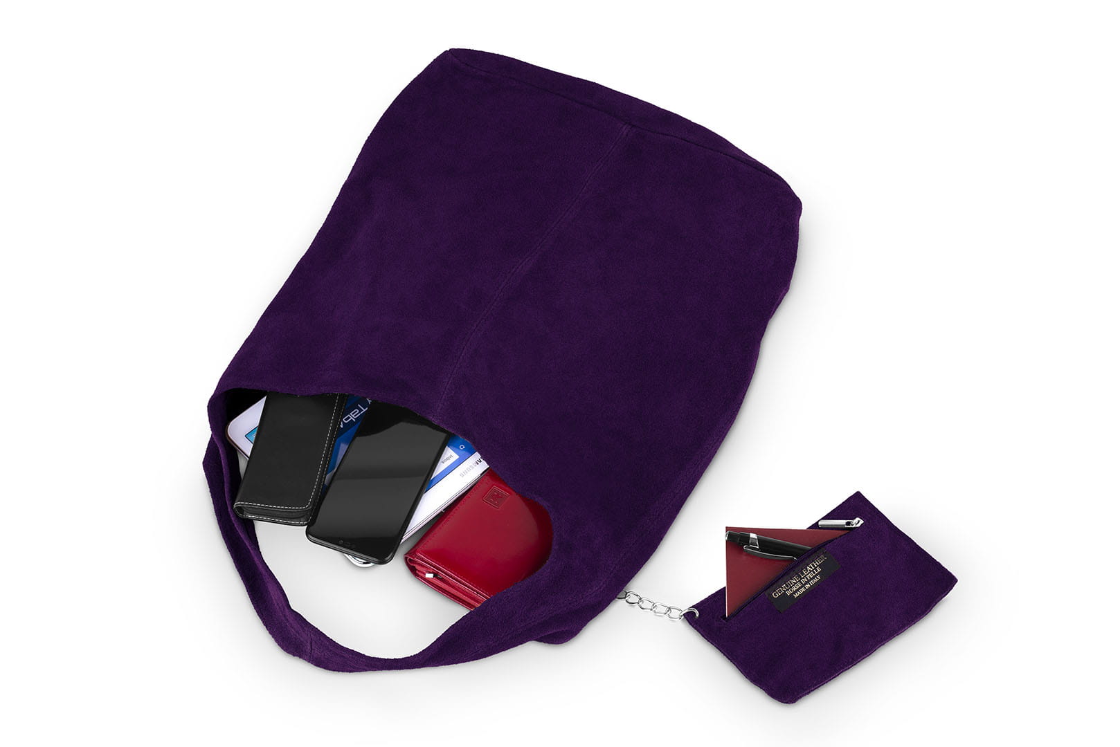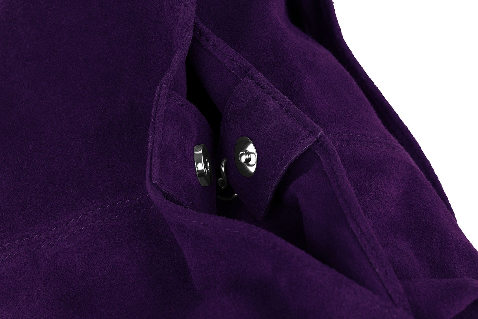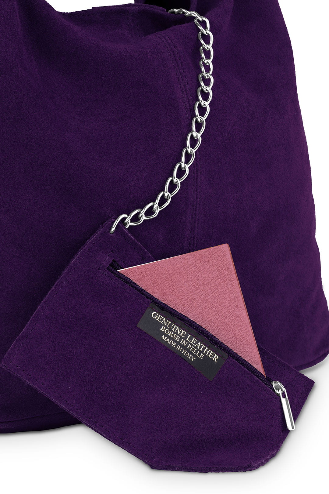 Torba damska wykonana z wysokogatunkowego włoskiego zamszu naturalnego. Zamsz ten jest wytrzymały i miękki. Dzięki temu, torba swobodnie dopasowuje się do ciała podczas noszenia jej na ramieniu. Do torby dołączona jest praktyczna saszetka. Jest ona uwiązana na łańcuszku co z jednej strony uniemożliwia jej zgubienie, a z drugiej pozwala łatwo odnaleźć ją w torbie.