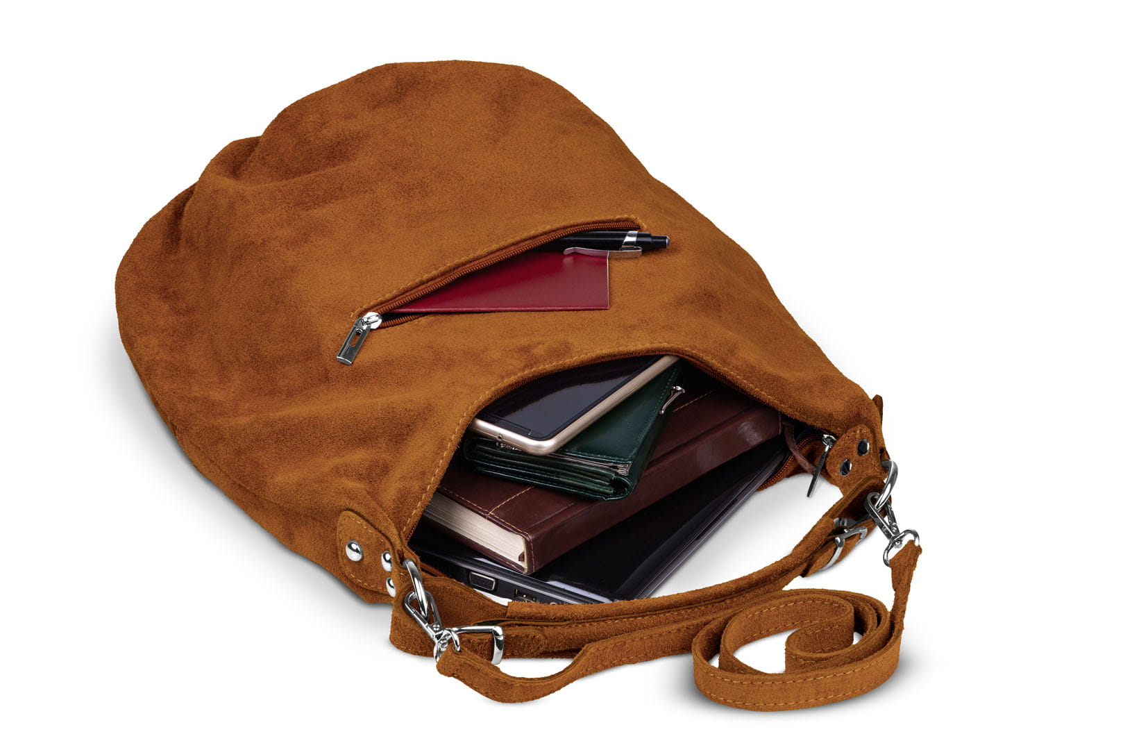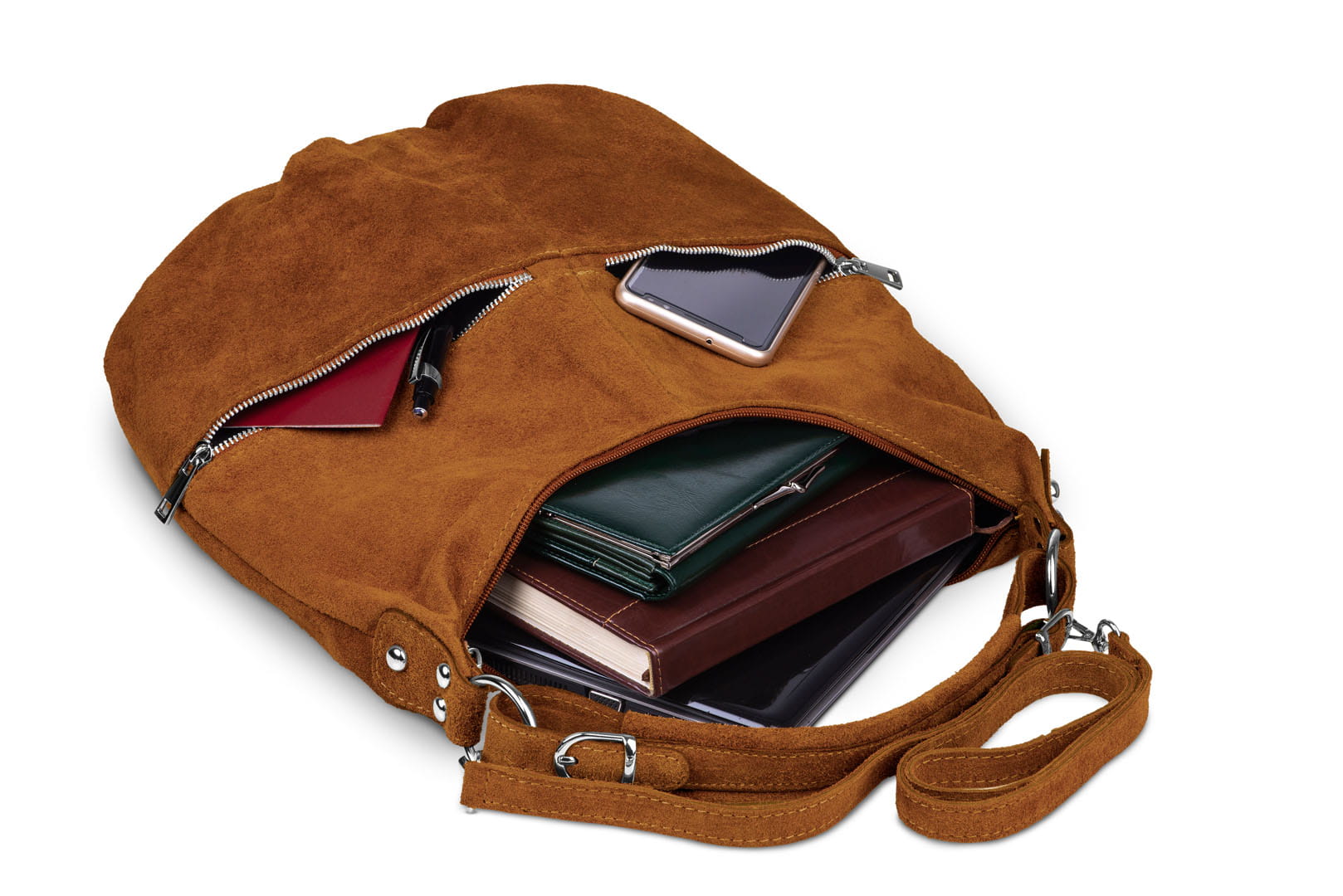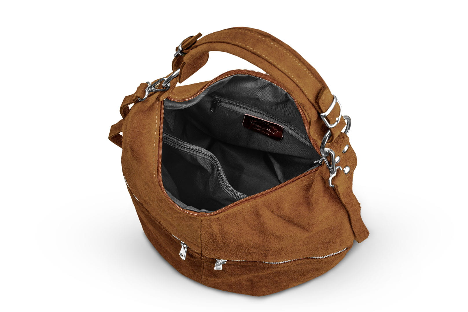 Torba damska wykonana z wysokogatunkowego włoskiego zamszu naturalnego.