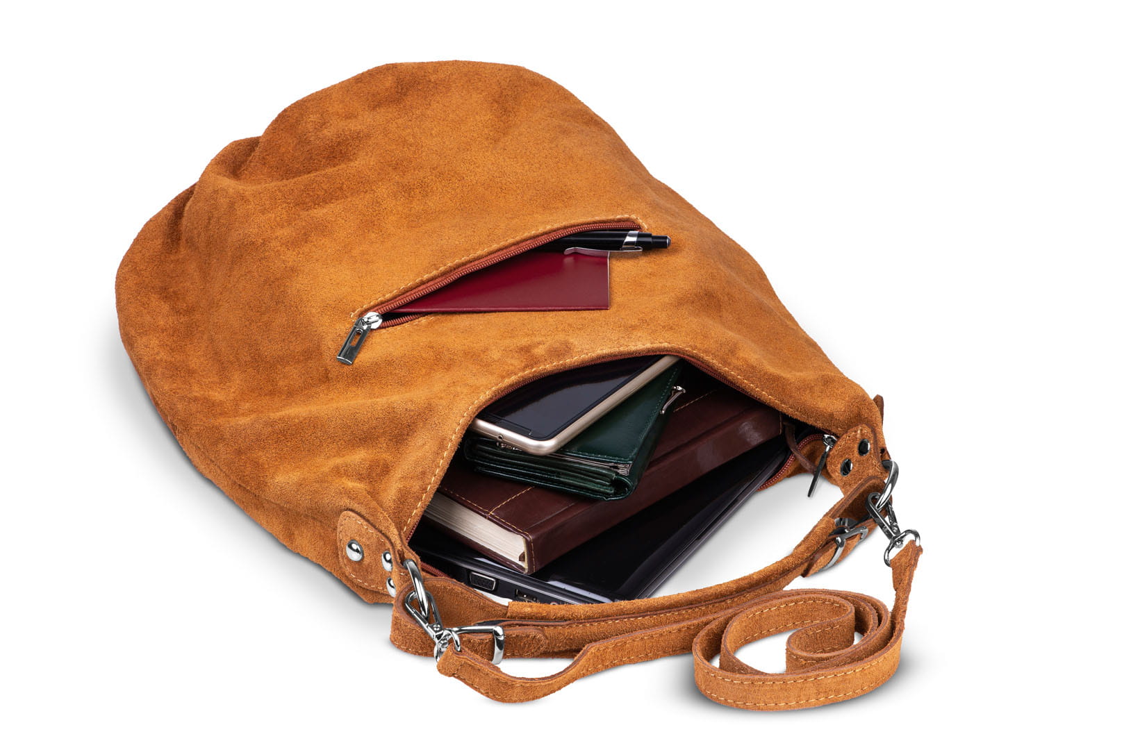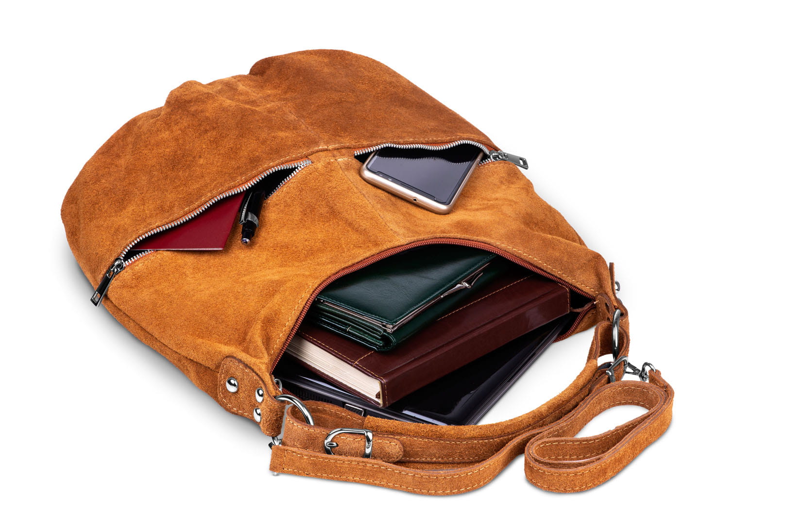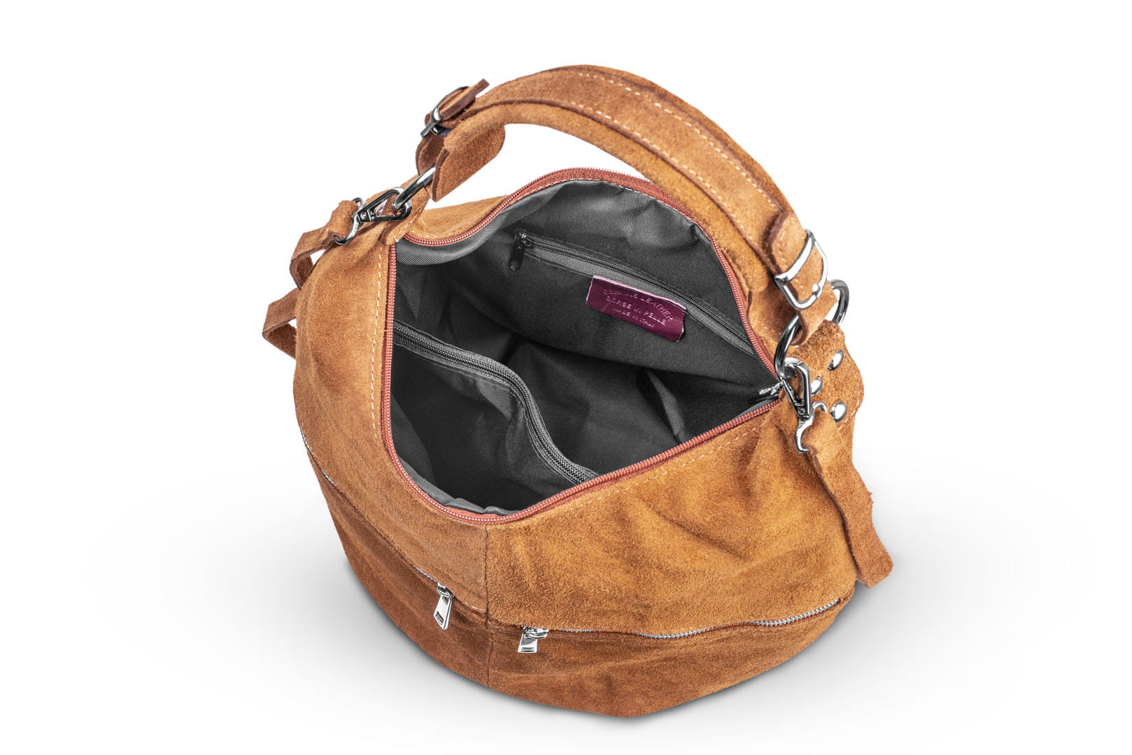 Torba damska wykonana z wysokogatunkowego włoskiego zamszu naturalnego.