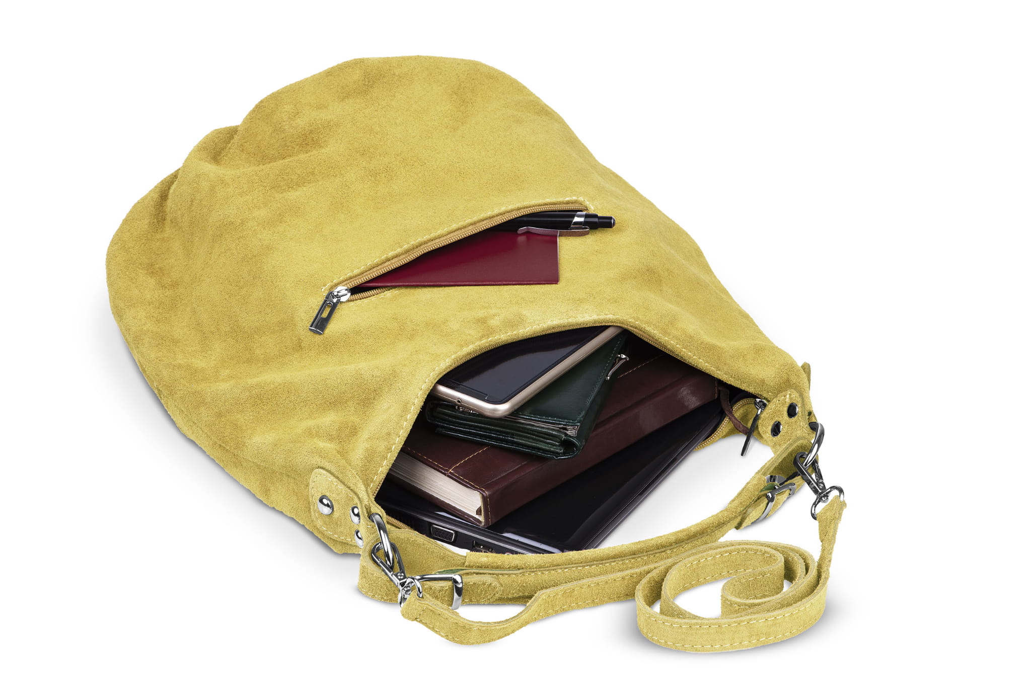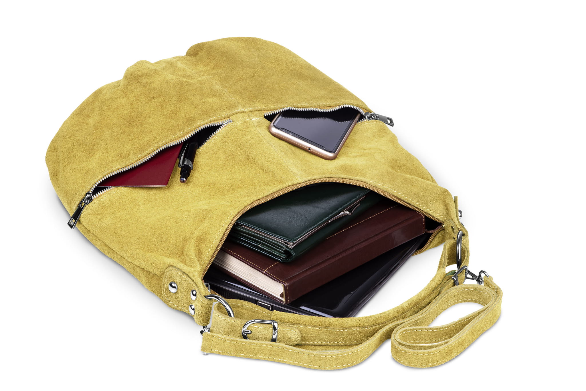 Torba damska wykonana z wysokogatunkowego włoskiego zamszu naturalnego.