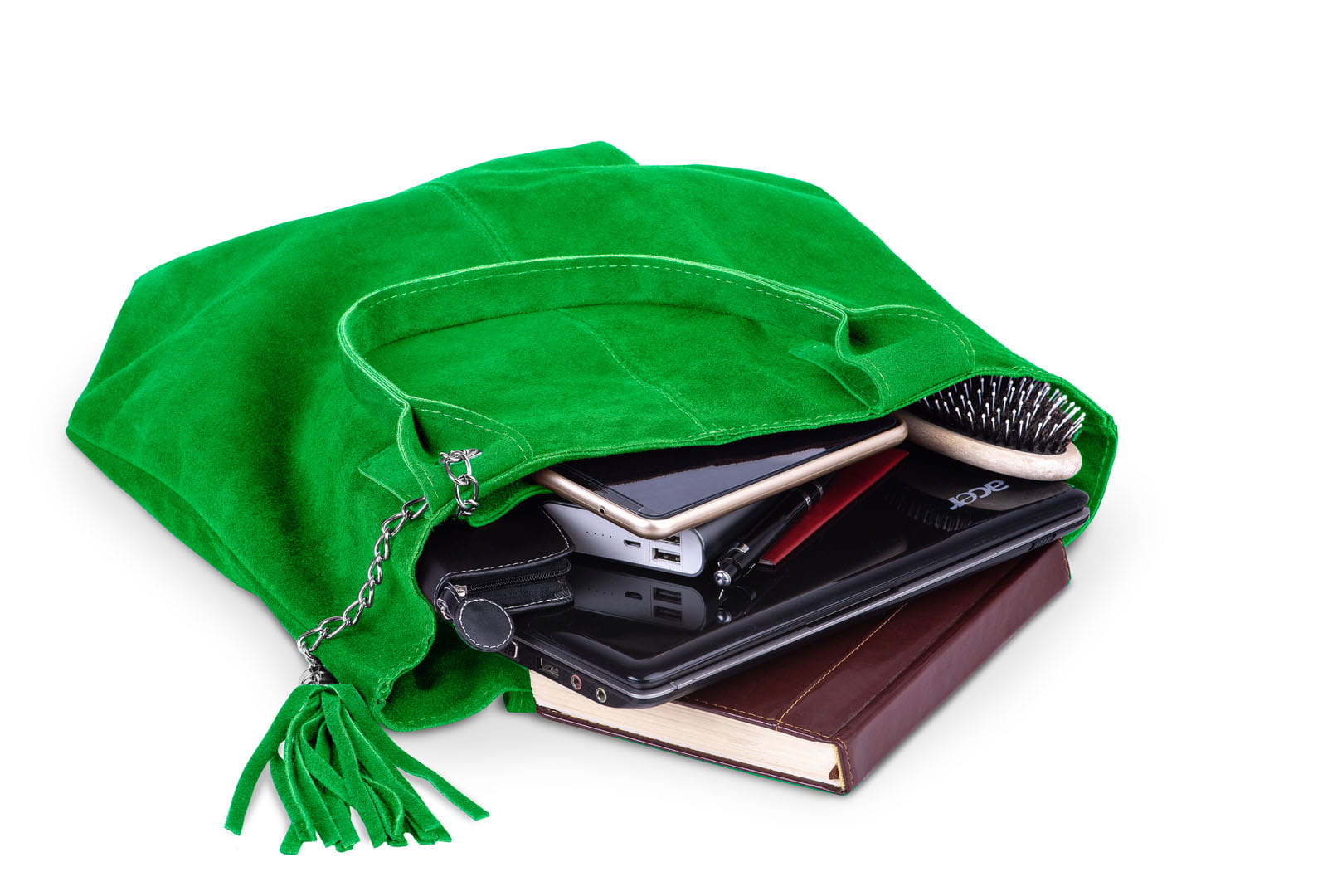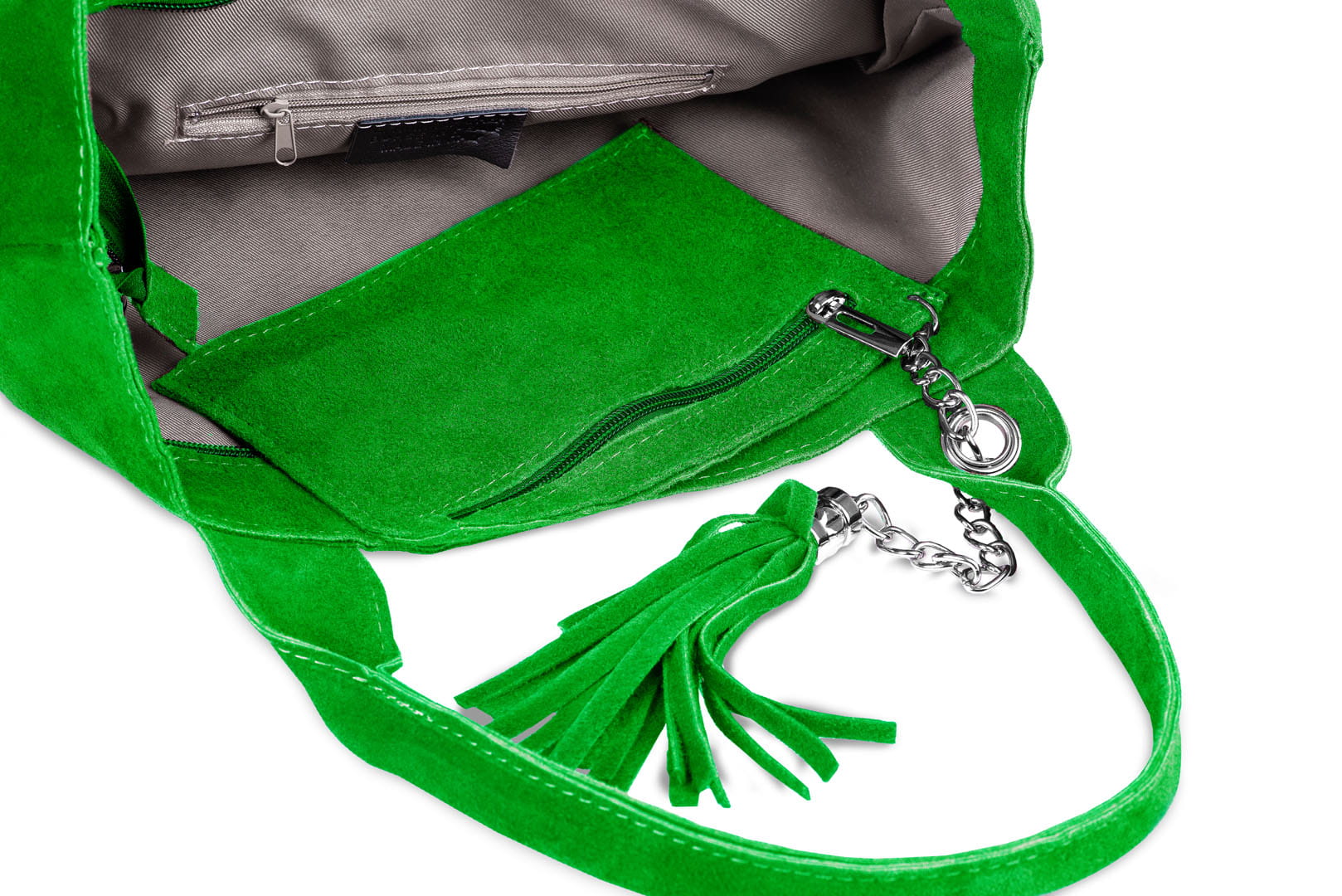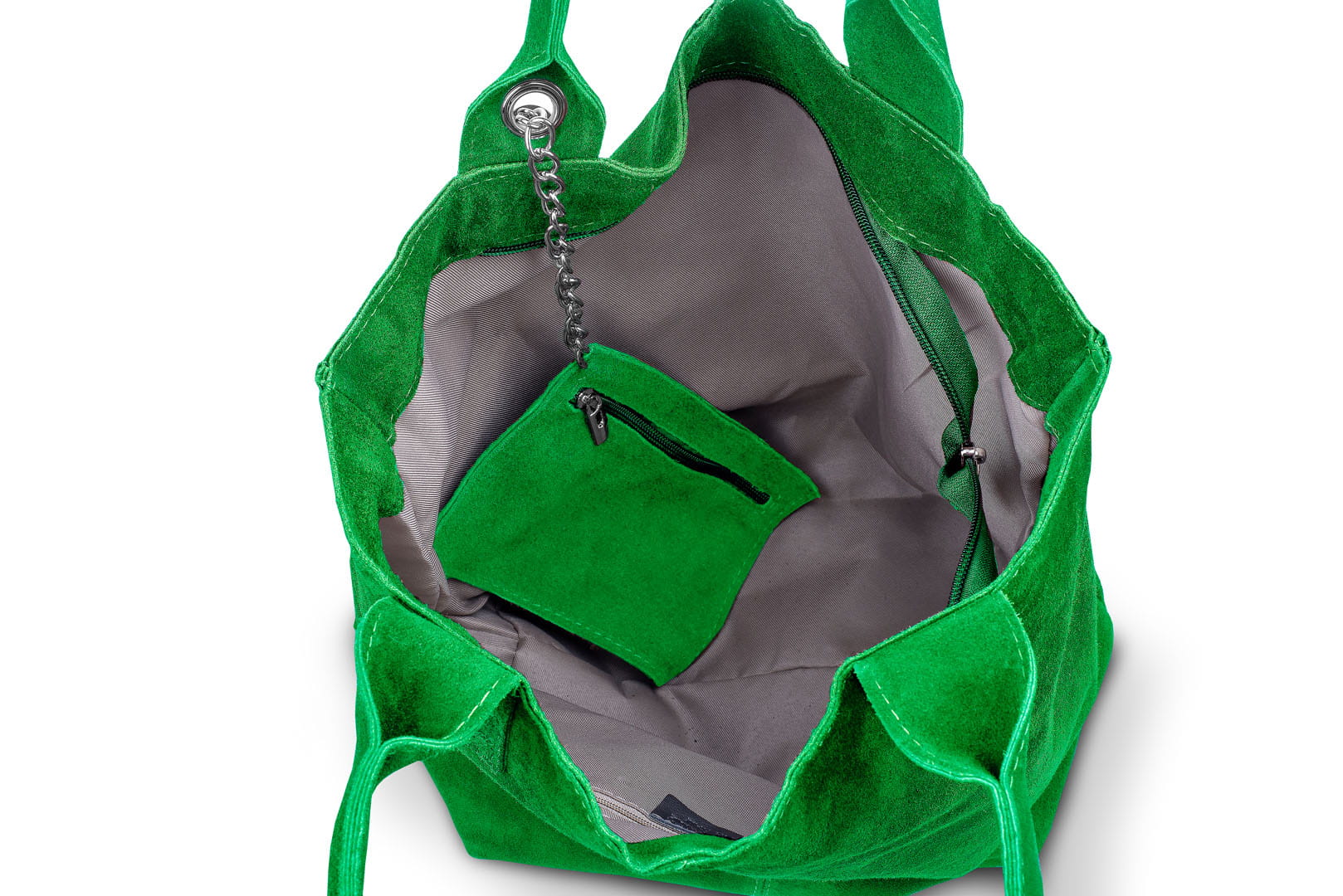 Torba damska wykonana z wysokogatunkowego włoskiego zamszu naturalnego. Do torby dołączona jest praktyczna saszetka. Jest ona uwiązana na łańcuszku co z jednej strony uniemożliwia jej zgubienie, a z drugiej pozwala łatwo odnaleźć ją w torbie.