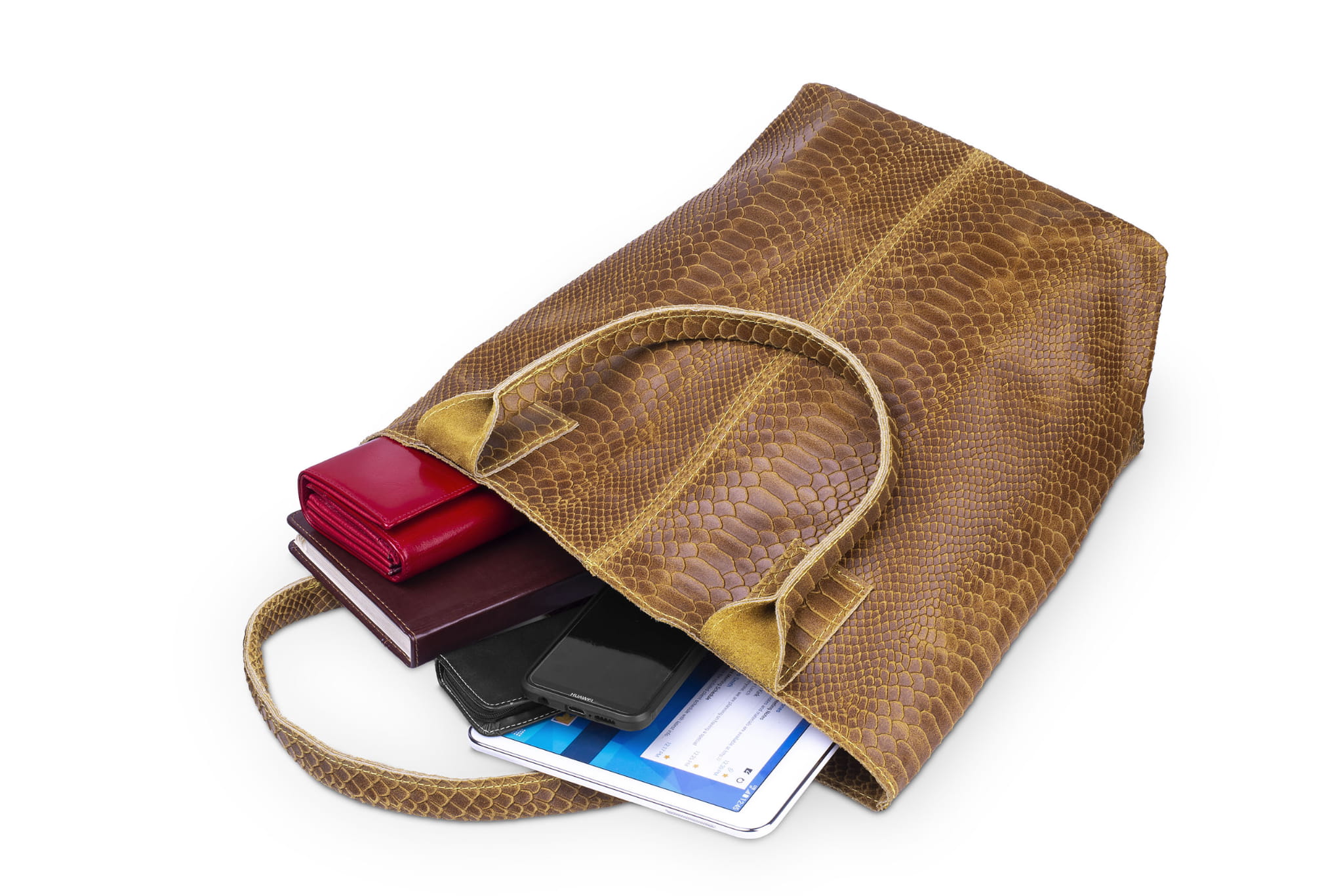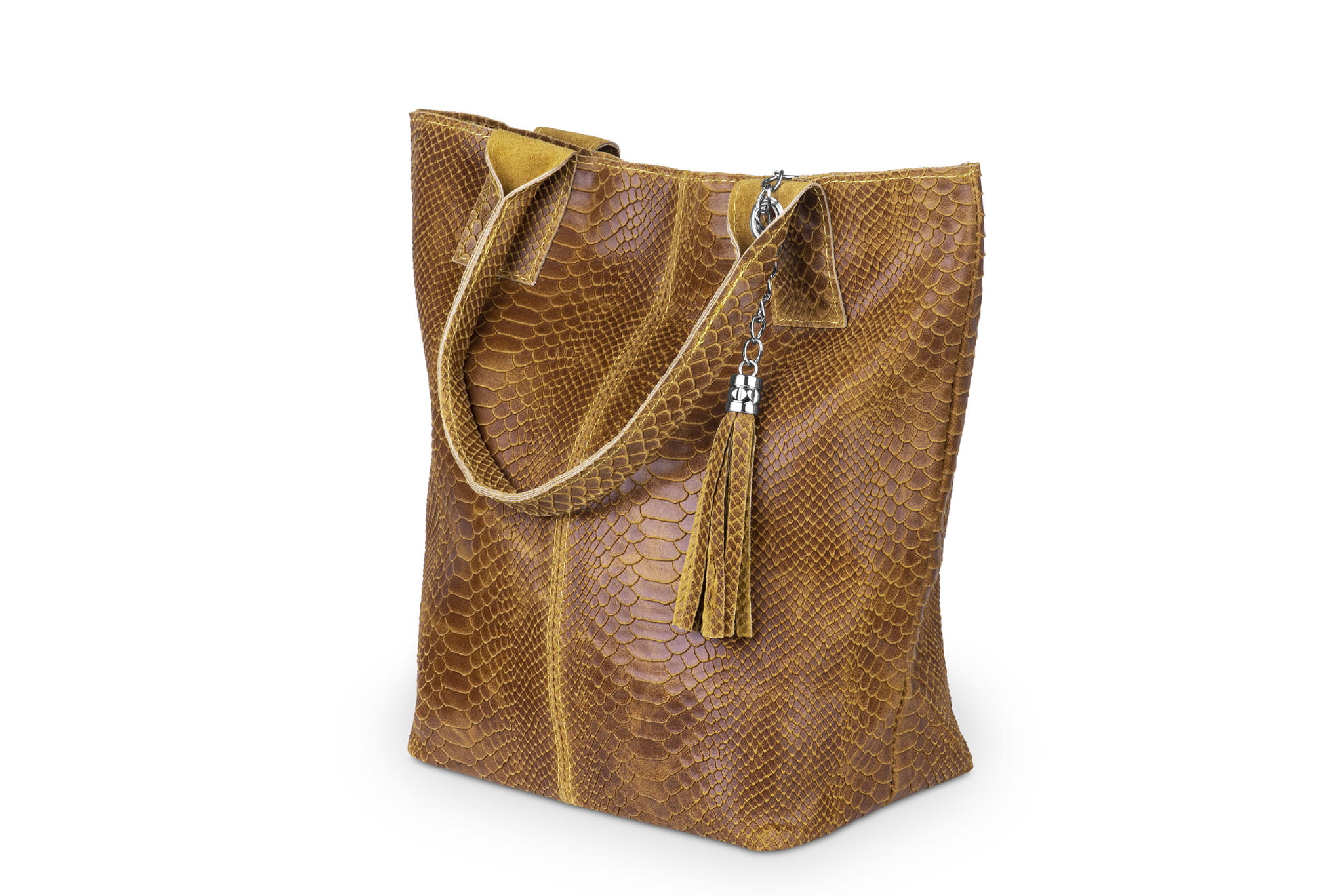 Torba Skórzana Vera Pelle Żmija Worek Koniak