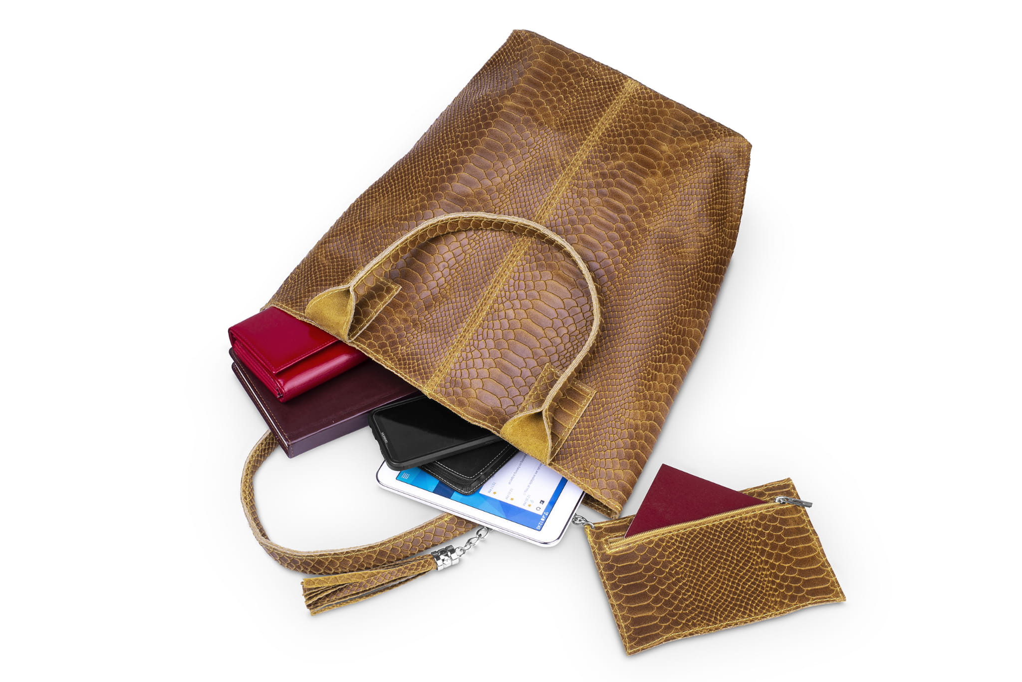Torba damska wykonana z wysokogatunkowej, włoskiej skóry licowej. Do torby dołączona jest praktyczna saszetka. Jest ona uwiązana na łańcuszku co z jednej strony uniemożliwia jej zgubienie, a z drugiej pozwala łatwo odnaleźć ją w torbie.