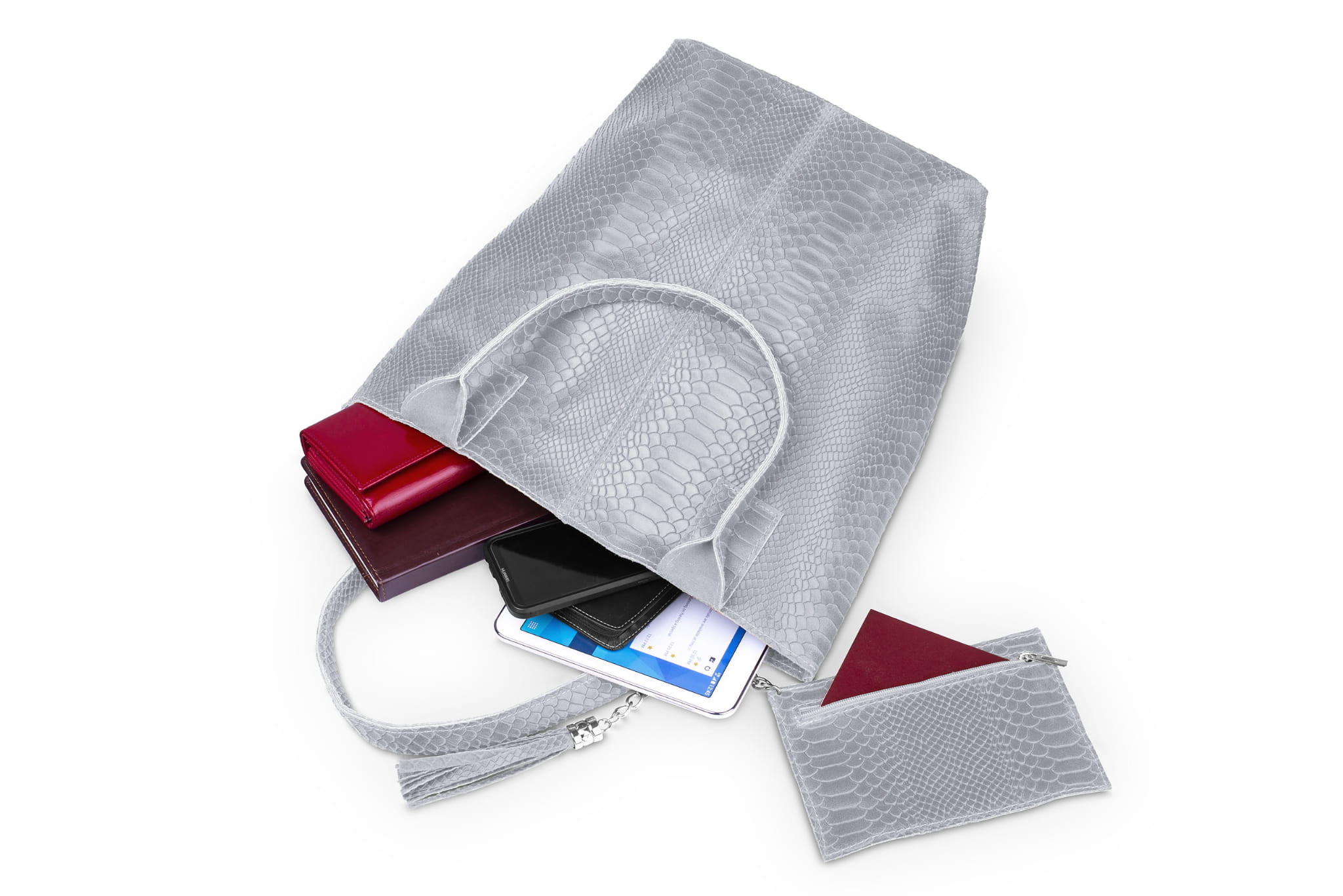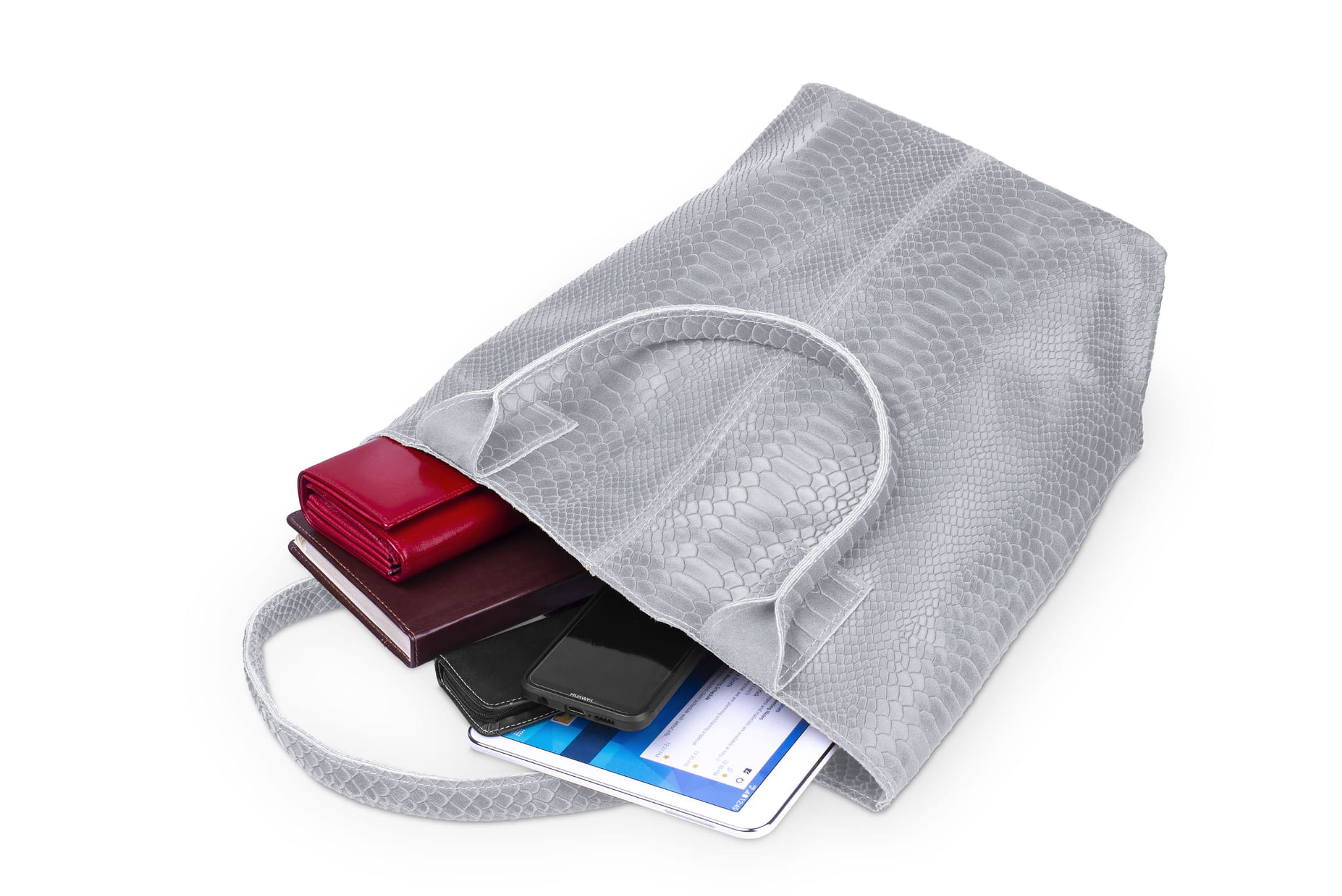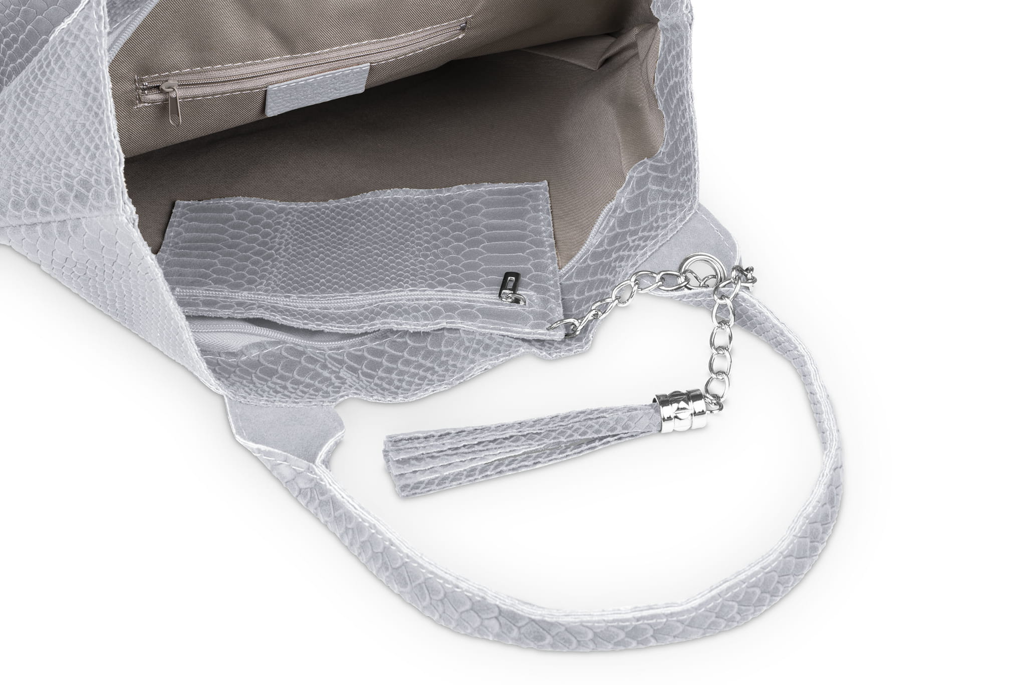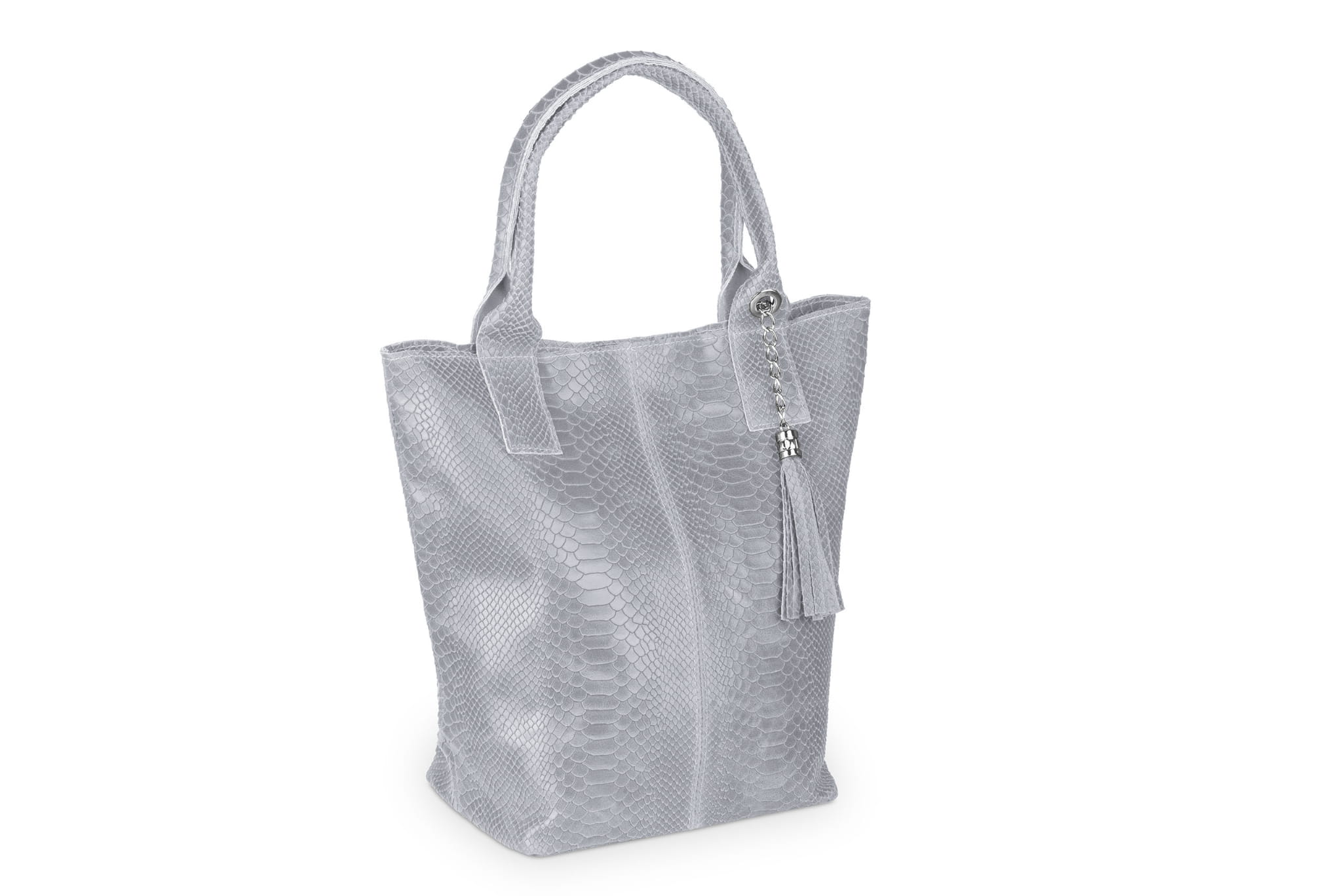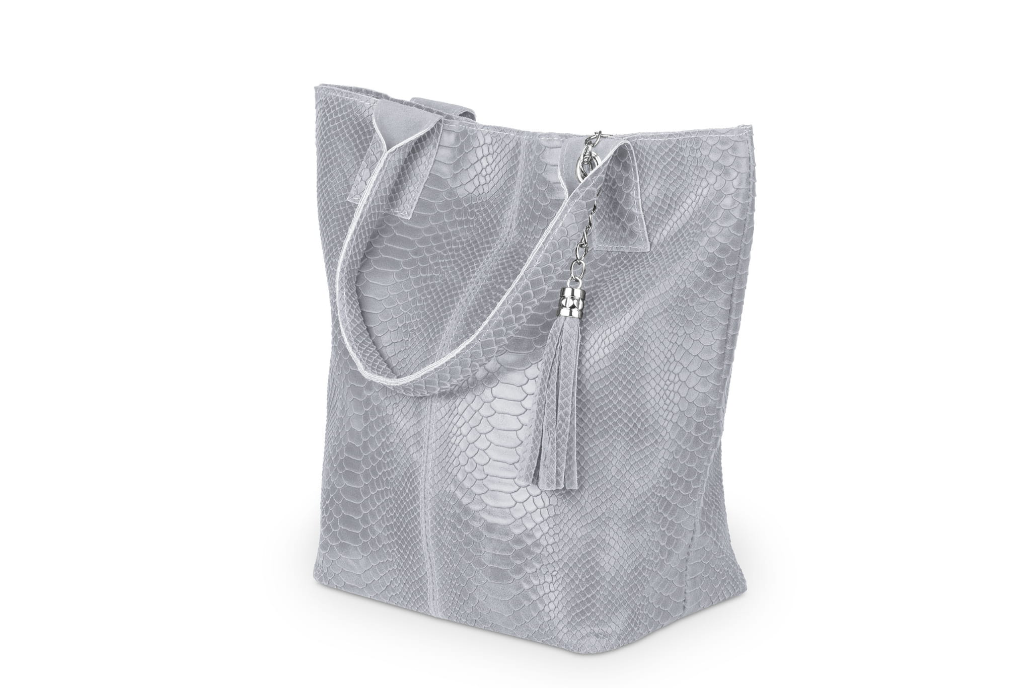 Torba Skórzana Vera Pelle Żmija Worek Szara