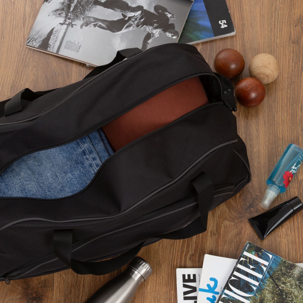 Solidna i poręczna torba fitness do codziennego użytku. Wykonana z wytrzymałej i nieprzemakalnej kodury.