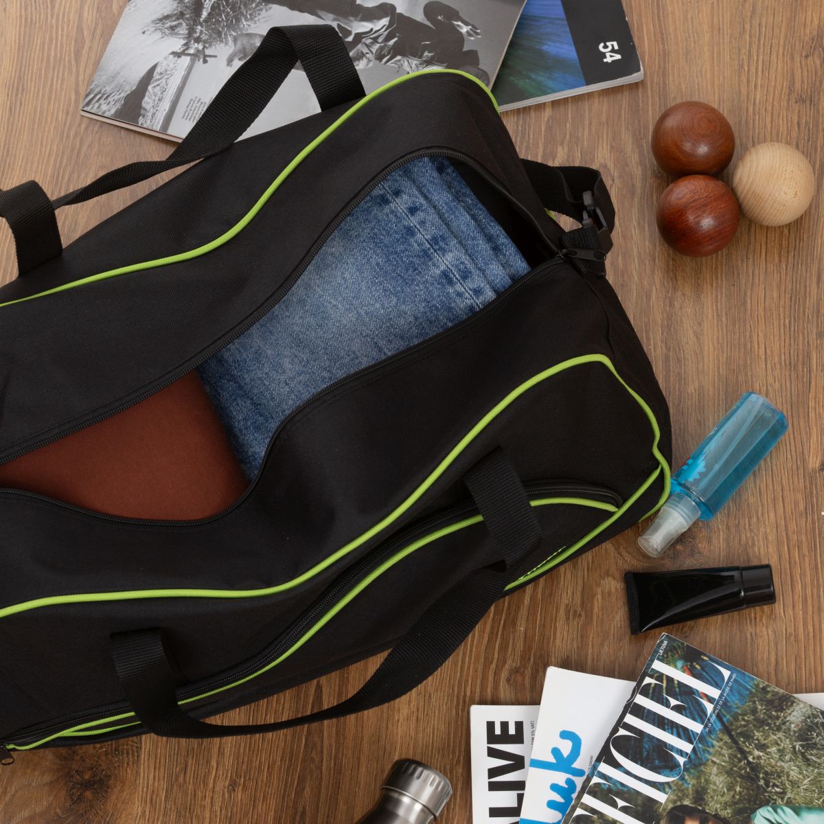 Solidna i poręczna torba fitness do codziennego użytku. Wykonana z wytrzymałej i nieprzemakalnej kodury.